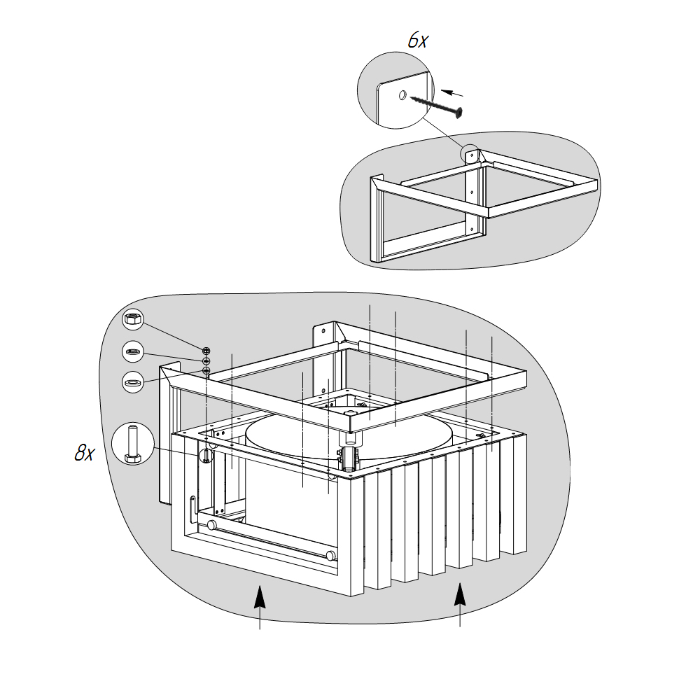 - Установите обливное устройство на кронштейн и с помощью крепежных элементов (входят в комплект поставки кронштейна) в восьми местах закрепите его.