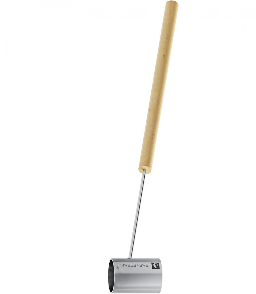 Профессиональный ковш для пролива каменки. Соотношение оптимального объема чаши и длины ручки позволяет дозировано производить подачу воды как в закрытую каменку и так и на открытые ее участки. Объем ковша 500 мл. идеален для создания мелкодисперсного пара в закрытых каменках на печах компании EASYSTEAM. Уникальный дизайн, разработанный по рекомендациям профессиональных банщиков и пар-мастеров является одновременно стильным, современным и функциональным. Ковш создан из нержавеющей стали, толщиной 1.5 мм., что исключает коррозию, деформацию и потерю великолепного внешнего вида. Длина ручки 80 см. обеспечивает комфортное использование с любой точки парного помещения без использования защитных рукавиц. Рукоятка выполнена из древесины, красиво выглядит и приятно лежит в руке, а также очень приятно пахнет.