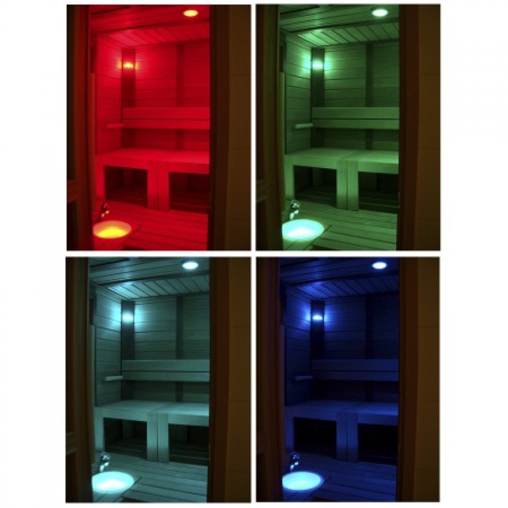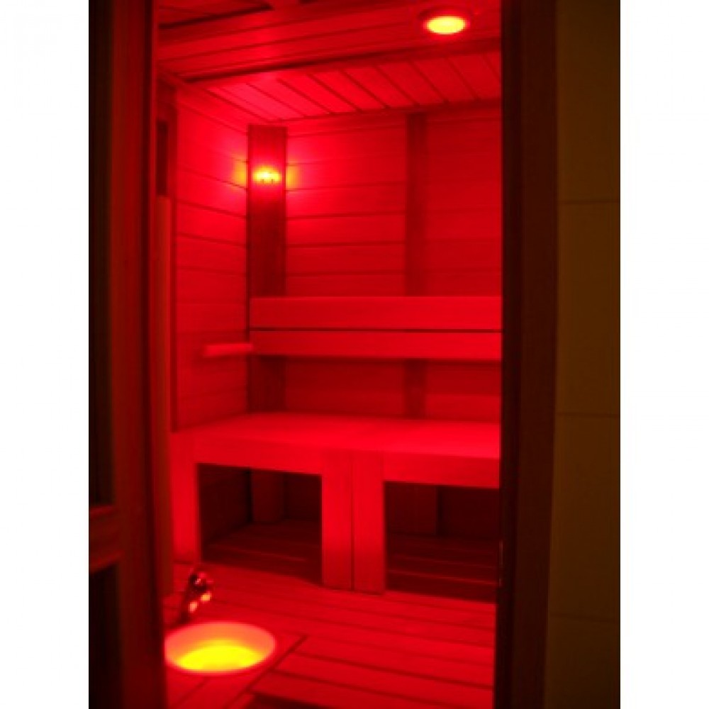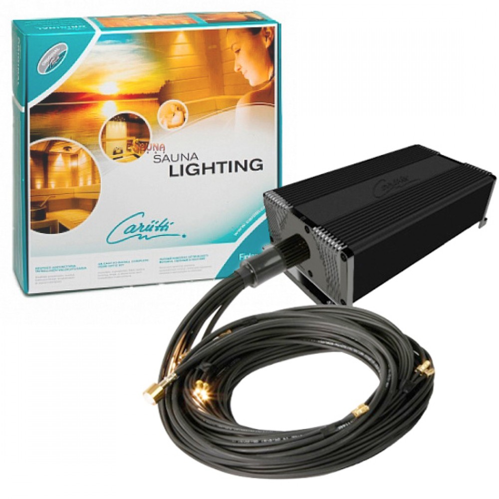 Рекомендуемый размер сауны - 1-8 м². Волокна изготовлены из стекла и выдерживают температуру 180 °C. Они могут быть установлены в потолке сауны. Светодиодный проектор имеет тип защиты IP65 и может устанавливаться внутри сауны под скамейками. Источник света проектора - 16 Вт, с цветовой температурой 2700 К (теплый) и очень высоким коэффициентом Ra (90). Срок службы до 50 000 часов. Проектор включает в себя электропитание с регулировкой яркости. Проектор полностью бесшумный, без шумного вентилятора. Может подключаться непосредственно к диммеру (с вилкой).