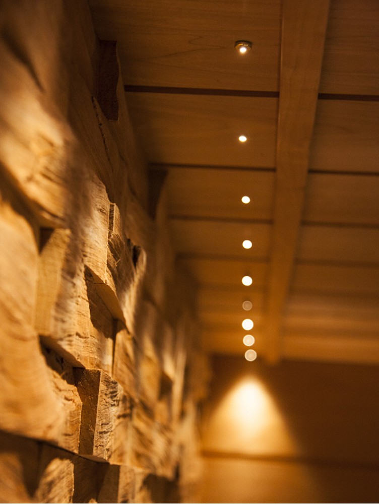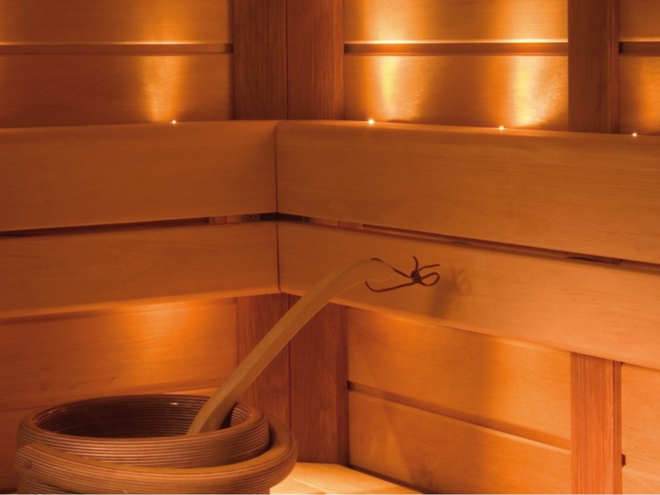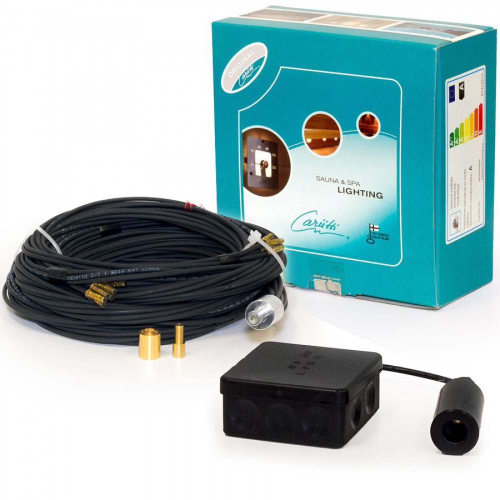 Комплект отлично подходит для освещения саун небольшого размера. Волокна — стеклянные и выдерживают температуру 180°C. Допускается установка в потолке.