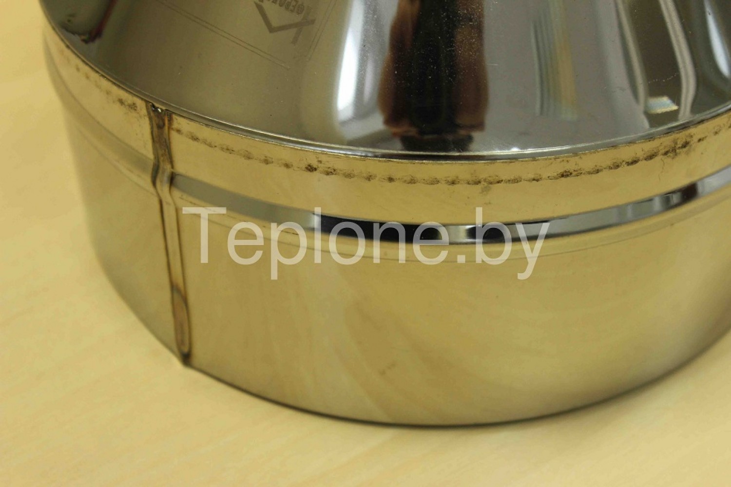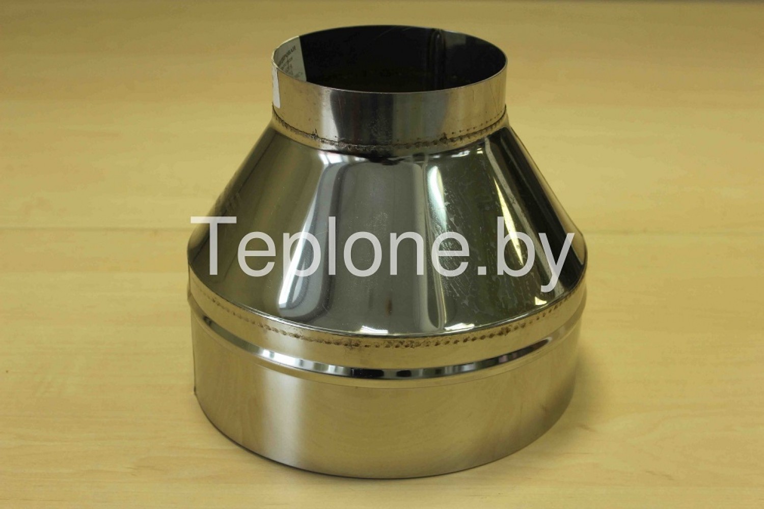 Основное назначение данного элемента защищать вату (утеплитель), который плотно уложен между наружными и внешним диаметром утепленного дымохода. В данном исполнении переход служит первым элементом после однотонного дымохода или сразу от отопительного оборудования. Толщина металла : 0,5 мм; 0,6 мм; 0,8 мм и 1,0 мм Номинальный размер диаметров в диапазоне: от 80 мм до 1000 мм. По индивидуальному заказу возможно изготовление любой нестандартной длины элемента до 1000 мм.