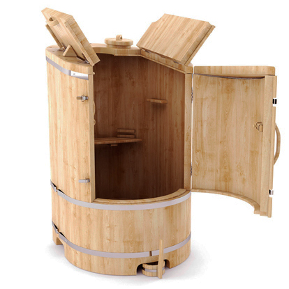 Фитобочка из массива кедра, оборудована распашными дверцами спереди и сверху. На верхних дверцах имеется удобный вырез для головы. Внутри же установлено, регулируемое по высоте сиденье, деревянный трап для ног и безопасная система подачи пара с датчиком температуры. Образующийся в процессе использования конденсат, выводится через специальный слив внутри бочки. Главной особенностью данного типа кедровых бочек является то, что человек в них находится в сидячем или полулежачем положении. Горизонтальные же паровые бочки и SPA-капсулы представляют из себя стол, который закрывается крышкой с вырезом для головы. Основное отличие состоит в том, что в фитобочках горизонтального типа процедуру человек проходит лёжа.