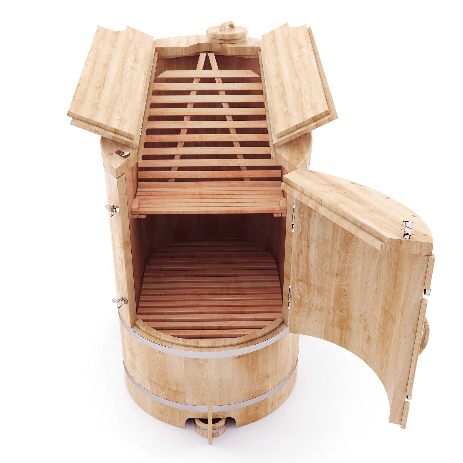 Фитобочка из массива кедра, оборудована распашными дверцами спереди и сверху. На верхних дверцах имеется удобный вырез для головы. Внутри же установлено, регулируемое по высоте сиденье, деревянный трап для ног и безопасная система подачи пара с датчиком температуры. Образующийся в процессе использования конденсат, выводится через специальный слив внутри бочки. Главной особенностью данного типа кедровых бочек является то, что человек в них находится в сидячем или полулежачем положении. Горизонтальные же паровые бочки и SPA-капсулы представляют из себя стол, который закрывается крышкой с вырезом для головы. Основное отличие состоит в том, что в фитобочках горизонтального типа процедуру человек проходит лёжа.