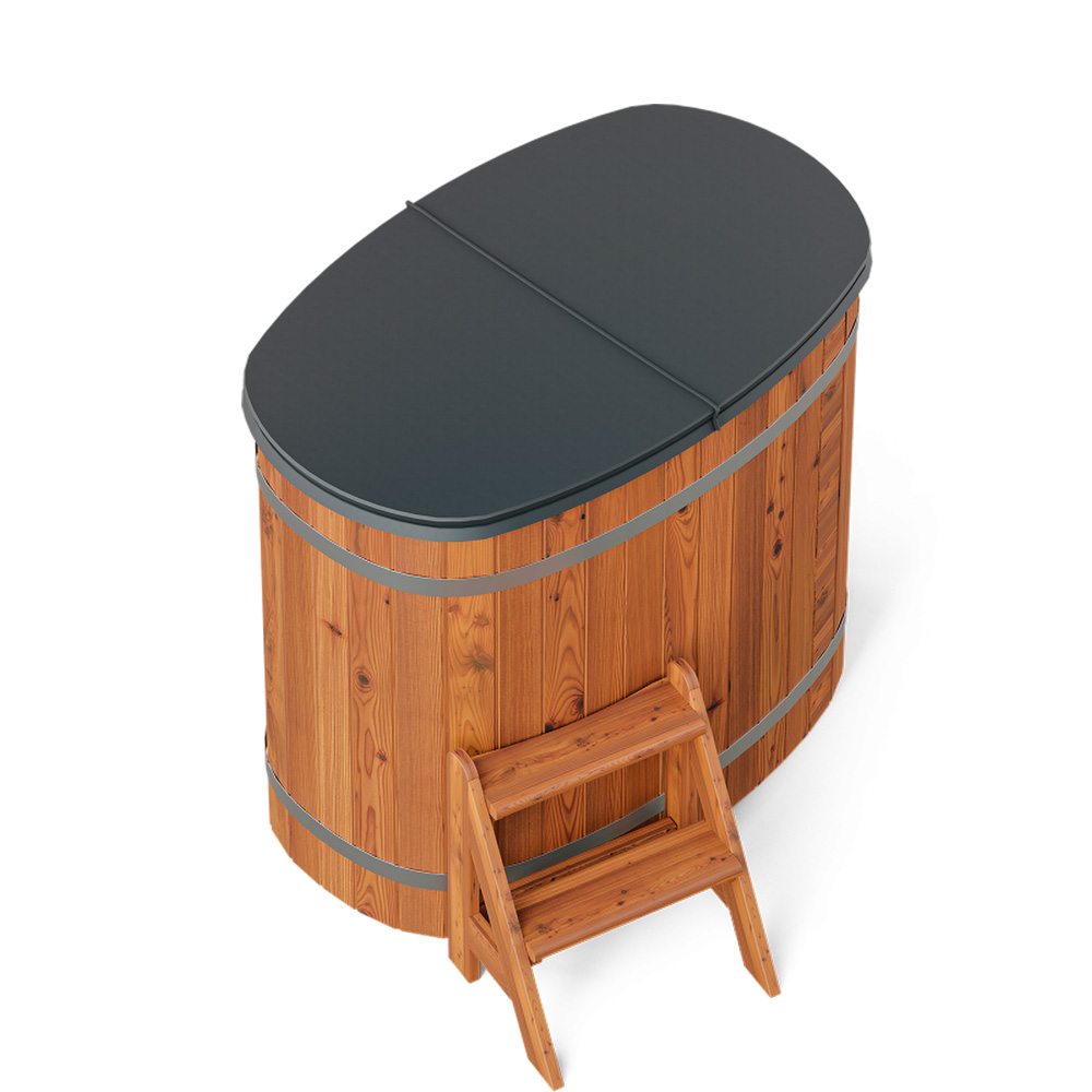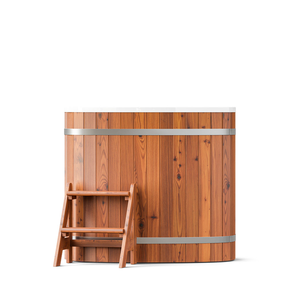 Отделка купели выполнена ламелями из термососны. Древесина предварительно подвергся температурной обработке в специальных условиях, что придаёт её устойчивость к воздействиям окружающей среды, стабильность (сохранение формы), прочность, долговечность и красивый внешний вид. Дополнительно термососны пропитываются специально разработанным составом на алкидной основе, который обеспечивает высокую защиту от влаги, гниения, плесени и грибков.