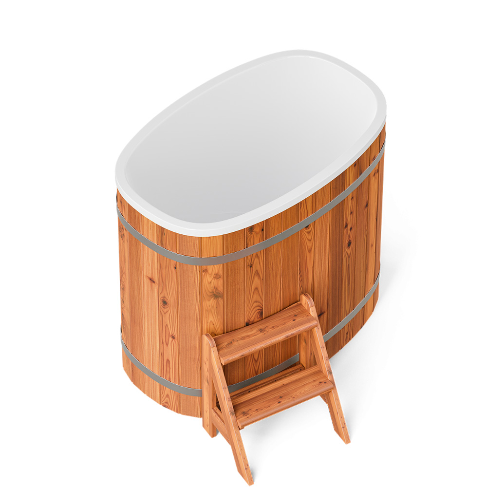 Классическая купель серии «Стандарт+» является наиболее вместительной одноместной купелью для бани и сауны. Удобная овальная форма и комфортное сиденье позволят использовать купель как для окунания после бани, так и для принятия теплых водных процедур. Благодаря использованию лучших европейских материалов и высокого уровня качества отделки купель можно использовать как в помещении, так и на улице, при любых погодных условиях. Удобная система наполнения (доступна опционально) и полуавтоматическая система слива воды в купели помогут Вам без дополнительных усилий наполнять и сливать воду. Главным преимуществом купели серии «Стандарт+», является оптимальный размер, позволяющий человеку любого телосложения комфортно себя чувствовать внутри.