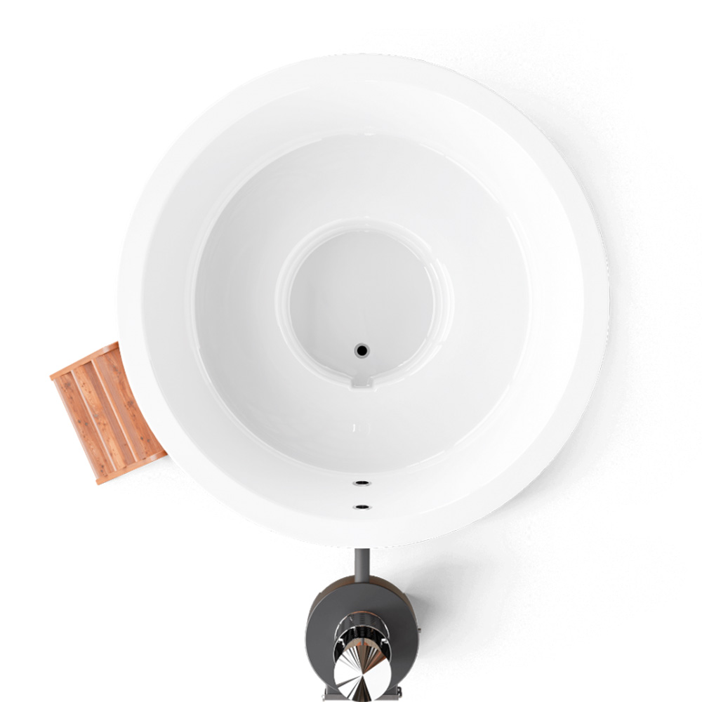 Купель серии «Комфорт Хот» с внешней печью подарит Вам незабываемые ощущения от водных процедур на свежем воздухе. Оптимальная круглая форма и комфортное сиденье по всей окружности купели позволят разместиться в ней всей семьёй или компанией друзей. Благодаря использованию качественных европейских материалов нашу купель можно использовать вне помещения при любых погодных условиях. Удобная система наполнения (устанавливается отдельно) и автоматическая система слива воды в купели помогут Вам без дополнительных усилий наполнять и сливать воду. Купель серии «Комфорт Хот» с наружной печью мощностью 40 кВт сочетает в себе традиции горячих купелей скандинавских народов, японских Фурако, славянских купелей для бани и ультрасовременные технологии.