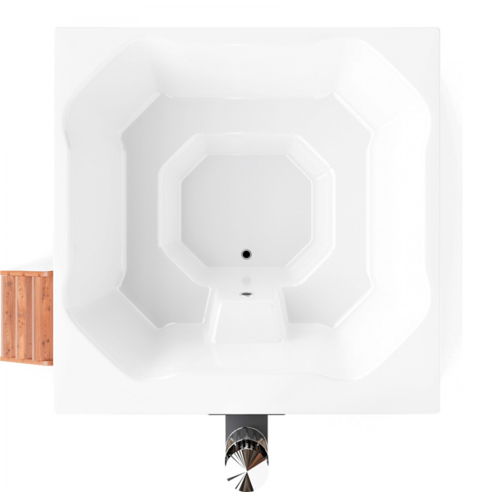 Благодаря продуманному симметричному дизайну, квадратная купель серии «Кваттро» гармонично впишется в любой интерьер. Удобное сиденье анатомической формы, расположенное по периметру купели, позволит разместить до шести человек с максимальным комфортом. Благодаря использованию лучших европейских материалов и высокого уровня качества отделки купель можно использовать как в помещении, так и на улице, при любых погодных условиях. Удобная система наполнения (доступна опционально) и полуавтоматическая система слива воды в купели помогут Вам без дополнительных усилий наполнять и сливать воду. Купель «Кваттро» отлично подходит как для бодрящих процедур в холодной воде после бани, так и для расслабляющей ванны с тёплой водой, нагретой при помощи встроенной дровяной печи.