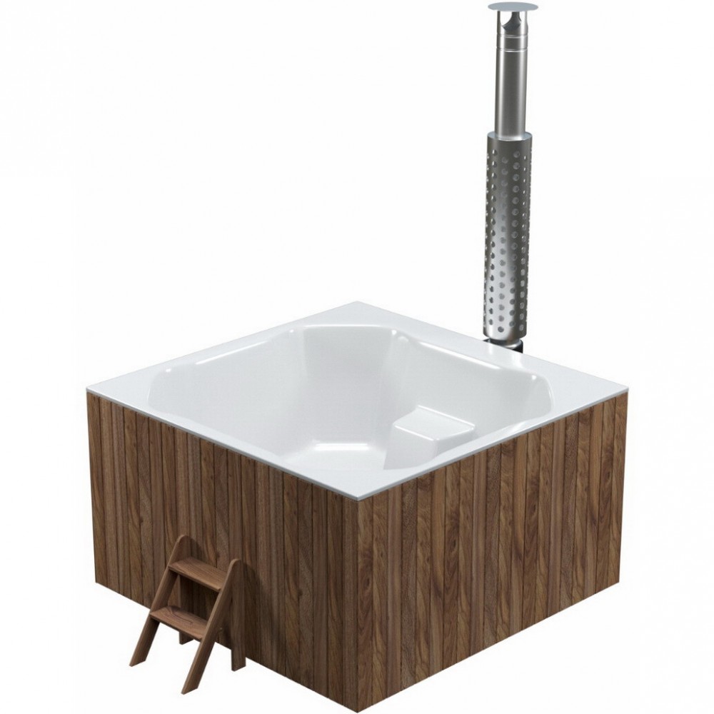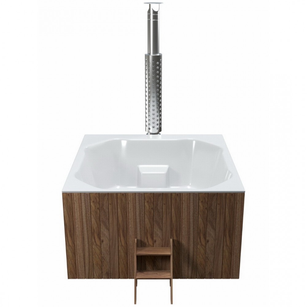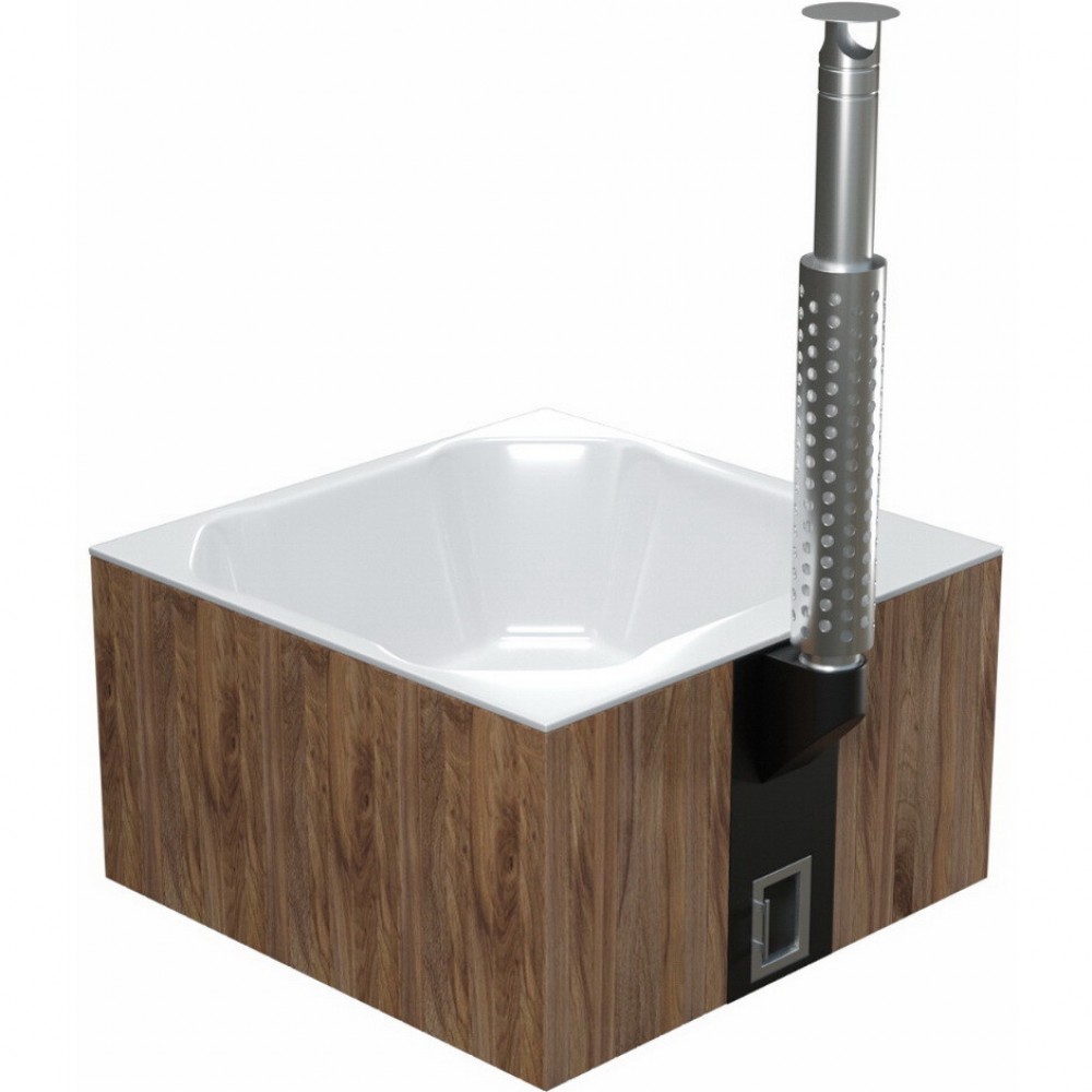Интегрированная в чашу купели печь из пищевой нержавеющей стали обеспечит максимально быстрый нагрев, удобную закладку дров, а установленное в дверце печи жаропрочное стекло позволит не только контролировать процесс горения, но и создаст дополнительный уют и романтику. Дымоход имеет специальный экран из нержавеющей зеркальной стали, что гарантирует защиту от возможных ожогов. Эстетичный краник слива купели расположен в удобном месте и может использоваться также для наполнения купели.