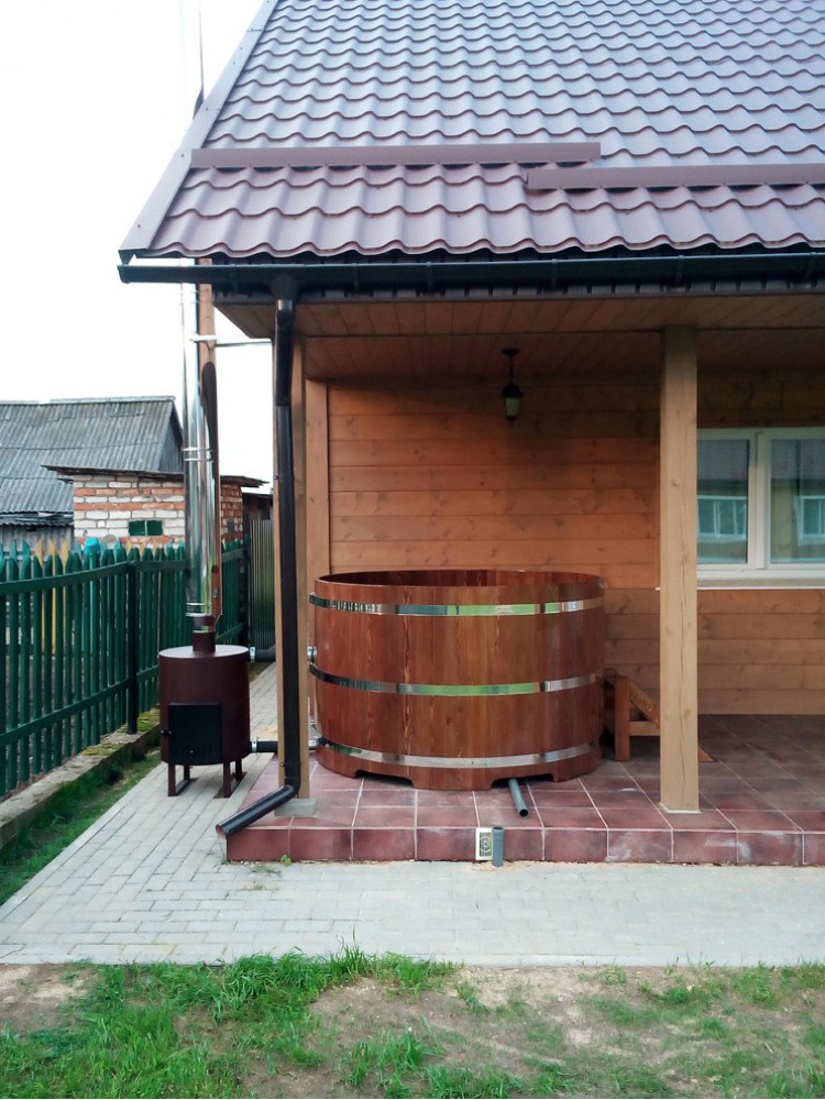 Чем хороша эта купель: простор внутри и особенность внутренней печи. Невероятные ущущение тепла и уюта, когда в воде рядом с вами топится и дымит печка. Попробуйте и Вам понравится, гарантируем.