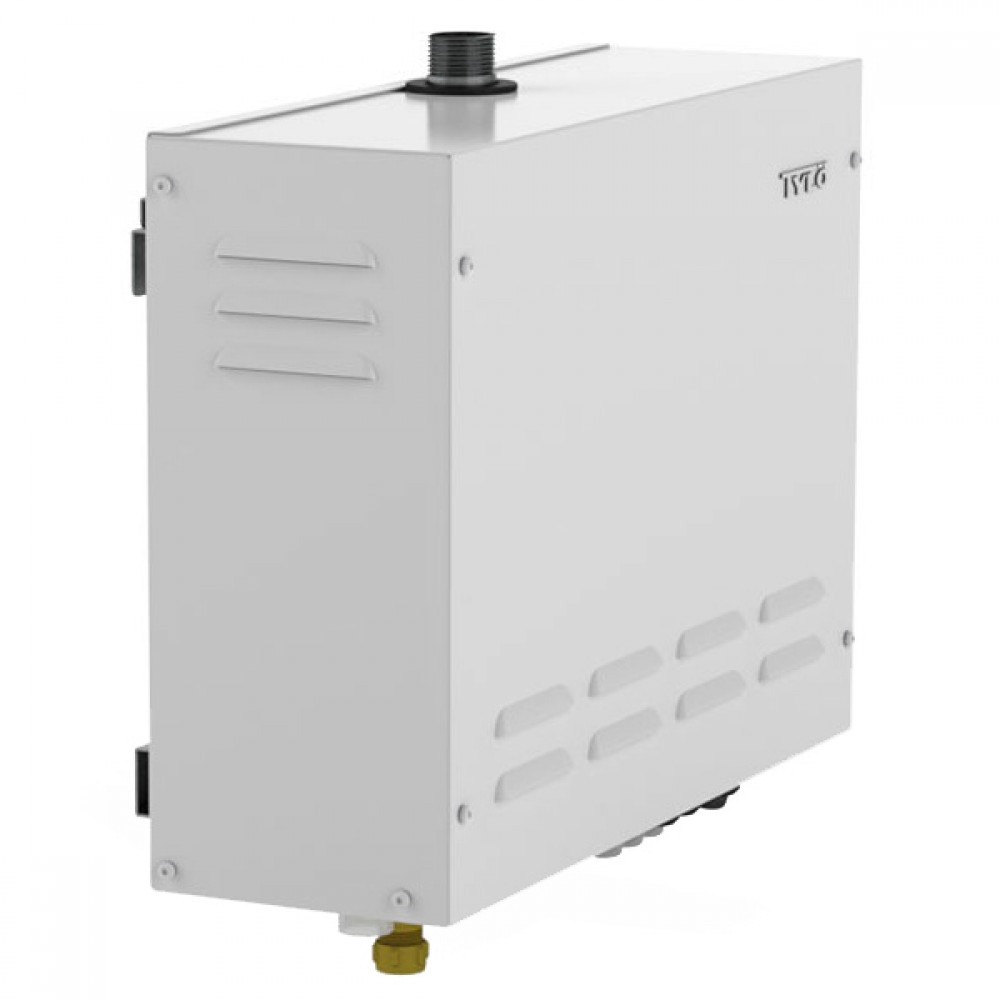 Для частного использования гарантия действует в течение 60 месяцев. В первые 24 месяца действует полная гарантия. В оставшееся время применяется гарантия на материалы. Для публичного использования гарантия действует 24 месяца. В первые 12 месяцев действует полная гарантия. В оставшееся время применяется гарантия на материалы. Время действительно с даты покупки продукта.Парогенератор следует устанавливать вне парильного помещения. Оптимальное расположение прибора - в специальной аппаратной комнате или другом хорошо проветриваемом помещении. Возможна установка этажом выше или ниже, а также на одном этаже с парилкой, но перепад высоты не должен быть более 3-х метров. Максимальная длина паровой трубы от парогенератора до парильного помещения - 15 метров. Парогенератор подключается к центральному водяному (желательно умягчение/деминерализация воды) и электроснабжению (переключается между одной и тремя фазами). Производительность пара: до 12 кг/час, независимо от качества и уровня воды. Парогенератор должен быть установлен горизонтально.