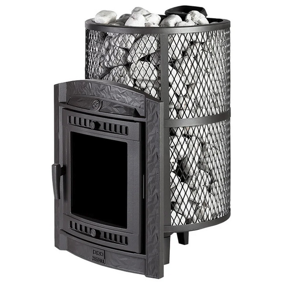 Кожух печи изготовлен в виде сетки из стали и полностью заполняется природными камнями, обеспечивая высокую динамику нагрева парильного помещения.
