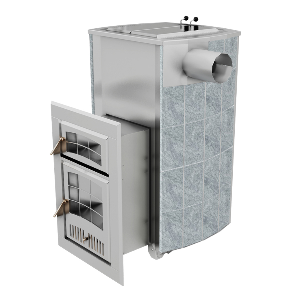 - надежность: Все элементы печи Чародейка Малая выполнены из нержавеющей жаростойкой стали 08Х18Т1 (Хрома не менее 18% Титана не менее 1%), колосник печи чугунный съемный. Печь Чародейка М может быть оборудована баком из нержавеющей стали на 50 литров или баком на 80 литров. Все баки для воды имеют углубленную горловину, это позволяет легко заливать воду прямо из ведра, исключая лишнее испарение. Кроме классических водогрейных баков на трубу, Вы можете оборудовать Чародейку М баком-теплообменником и выносным баком для воды на 100 литров. Теплообменник снижает влажность внутри парилки и способен разогреть в замкнутой системе до 200 литров воды.