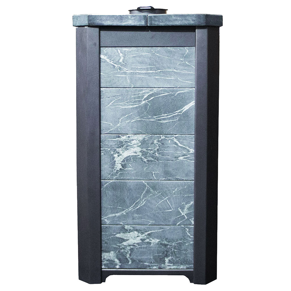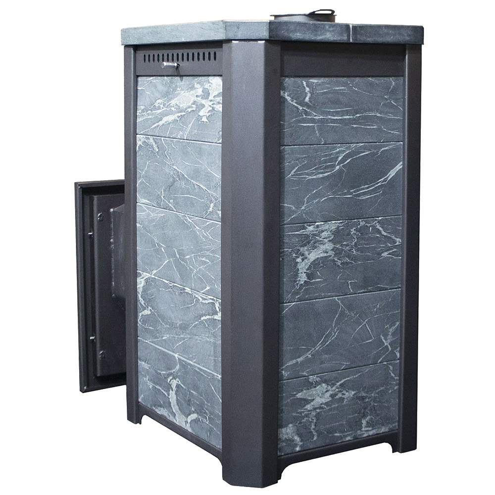Варвара Сказка сочетает в себе привлекательный внешний вид и эффективную конвекционно – аккумулирующую печь, способную за короткое время прогреть помещение и оставить его теплым в течении продолжительного времени. Облицовка натуральным камнем убирает инфракрасное излучение, исходящее от корпуса печи, что создает мягкий и комфортный микроклимат в парной.