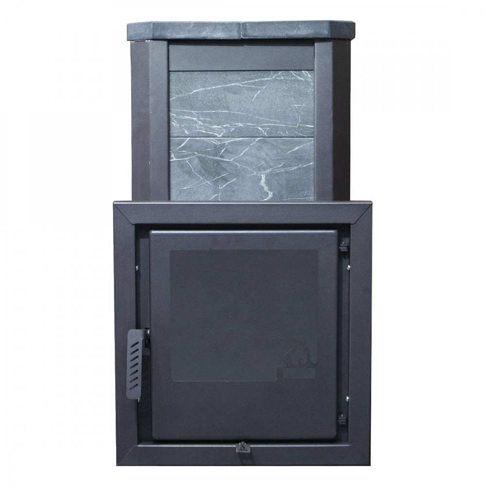 Топка и зольный ящик изготовлены из стального проката, усиленные в участках подверженных наибольшей деформации гибкой. Рядом с отсеком для закладки камня находится патрубок для подключения дымохода.