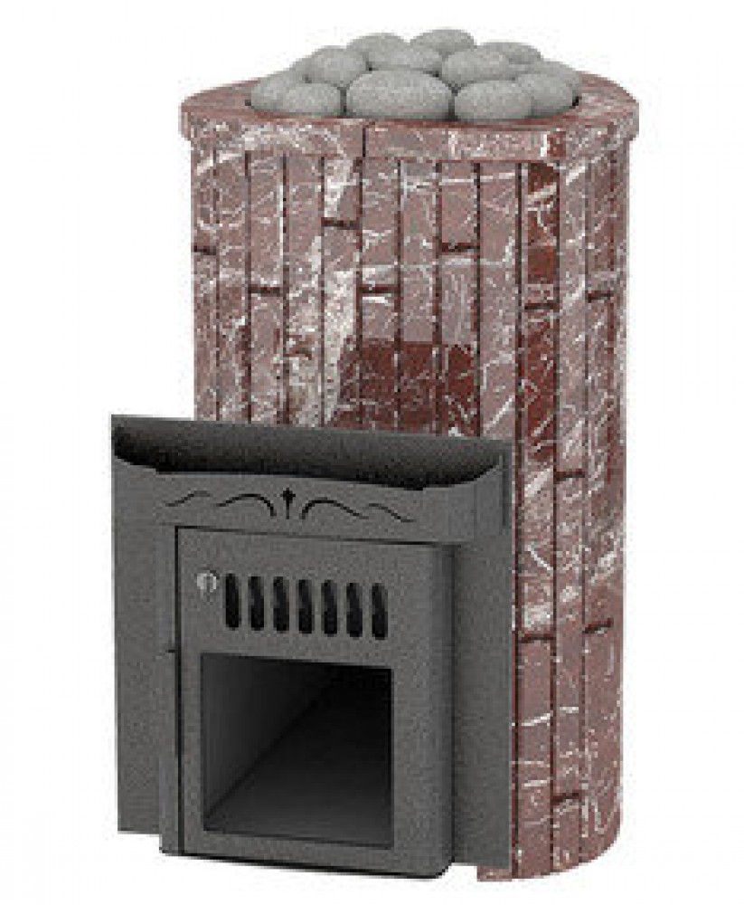 Печь для финской сауны Мини облицовка - Мрамор Россо Леванте - Обрамление камень до 16 м³ - Телескоп