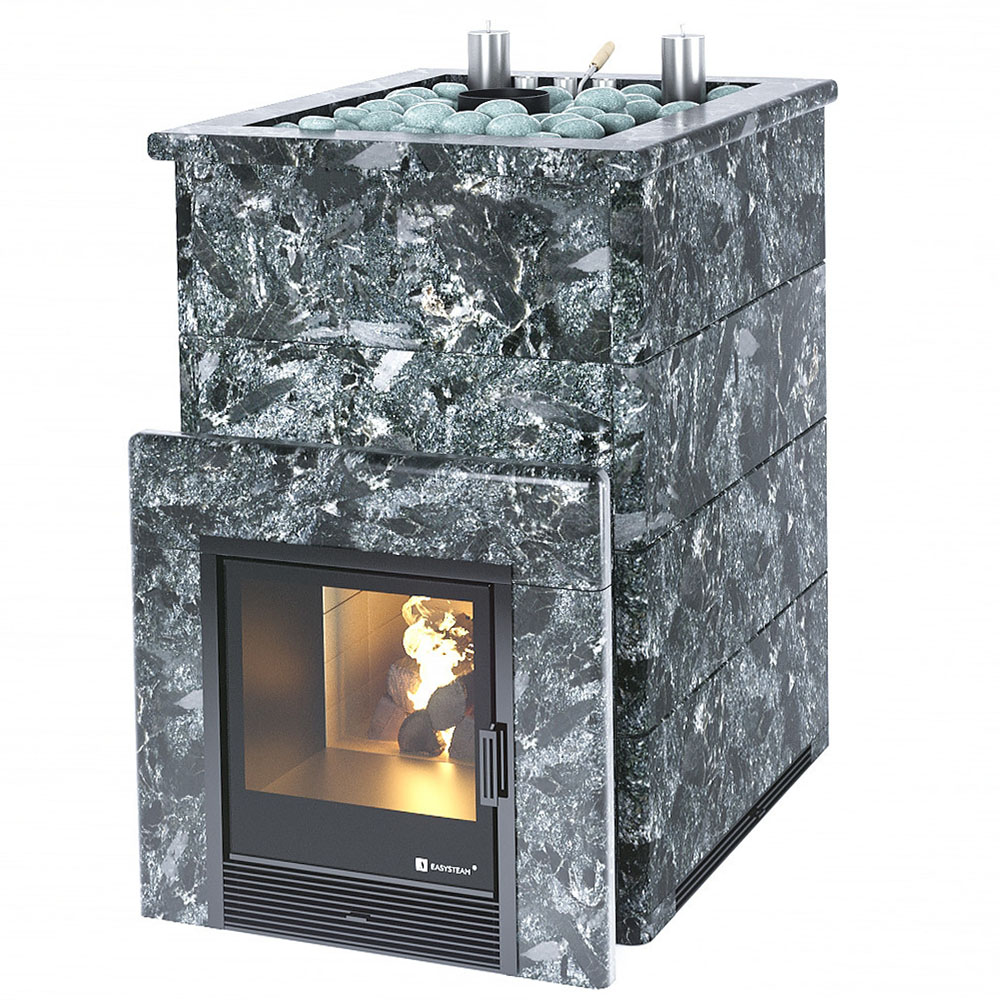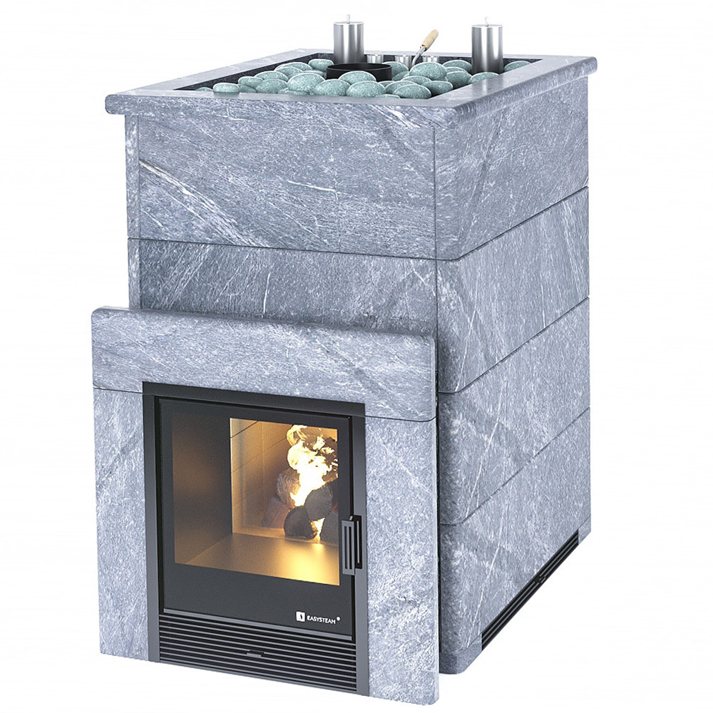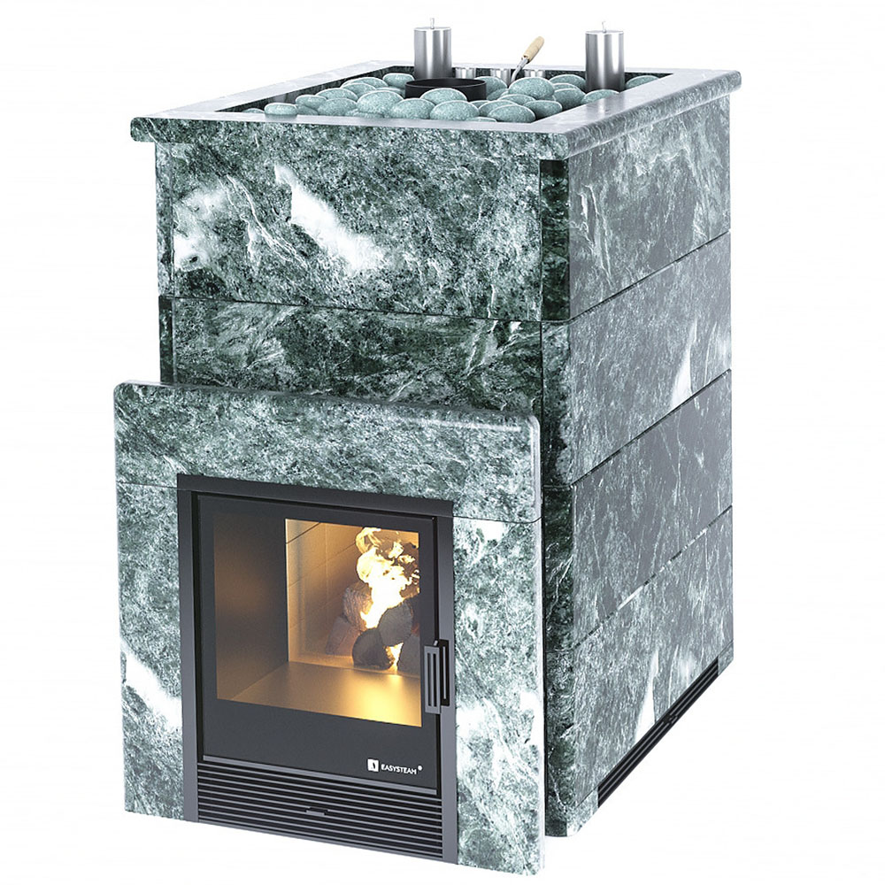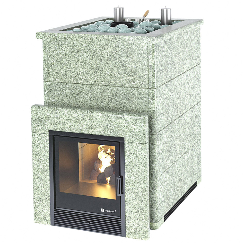Закрытая каменка позволяет разогреть камни до высоких температур 600 градусов, а встроенный парогенератор обеспечивает попадание пароводяной смеси на нижний самый разогретый слой камней, и на выходе получить качественный мелкодисперсный лёгкий пар.