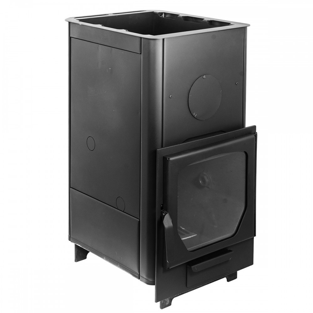 Топка и зольный ящик изготовлены из стального проката, усиленные в участках подверженных наибольшей деформации гибкой. Рядом с отсеком для закладки камня находится патрубок для подключения дымохода.