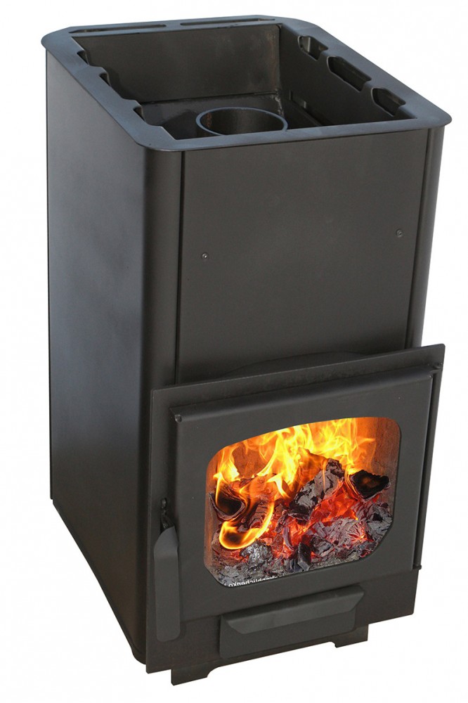Топка и зольный ящик изготовлены из стального проката, усиленные в участках подверженных наибольшей деформации гибкой. Рядом с отсеком для закладки камня находится патрубок для подключения дымохода.