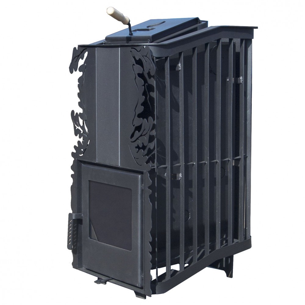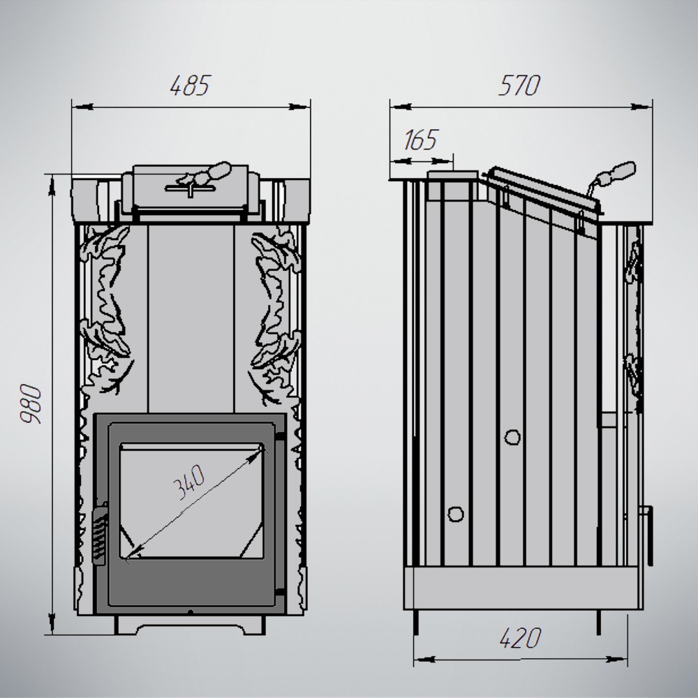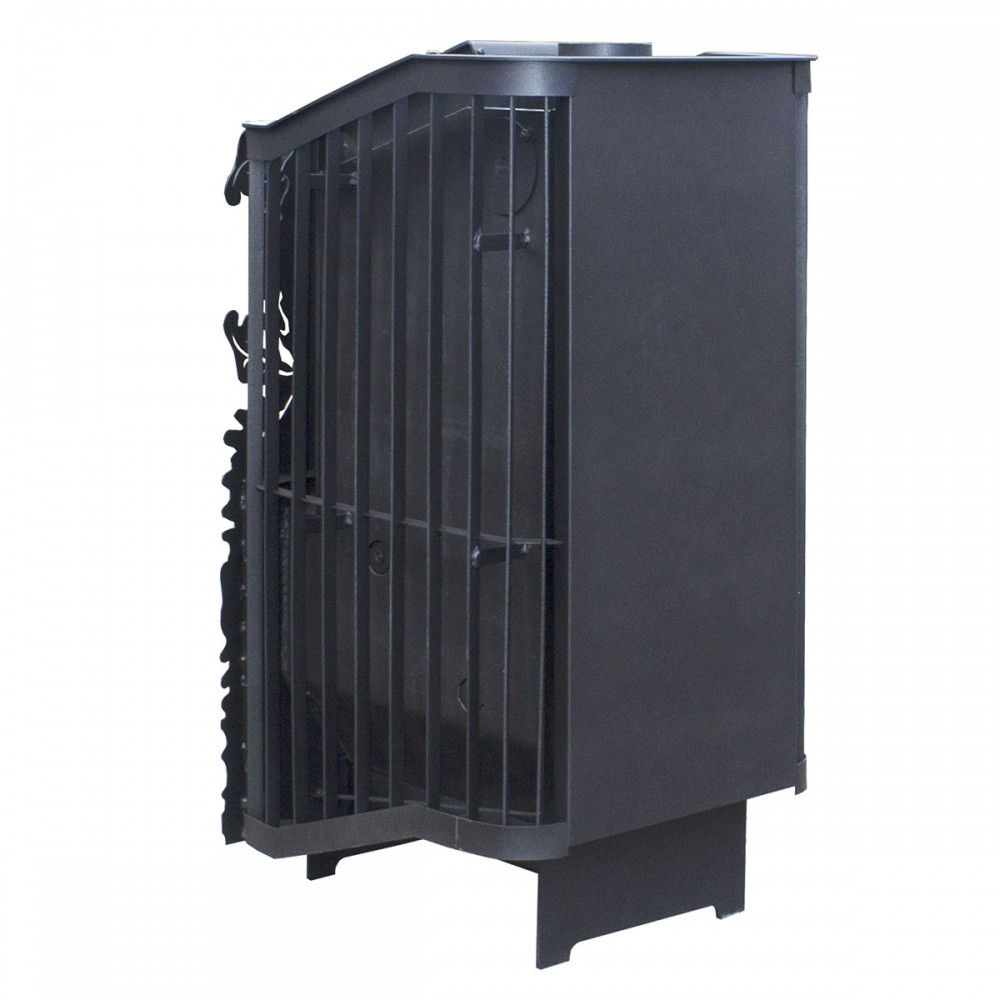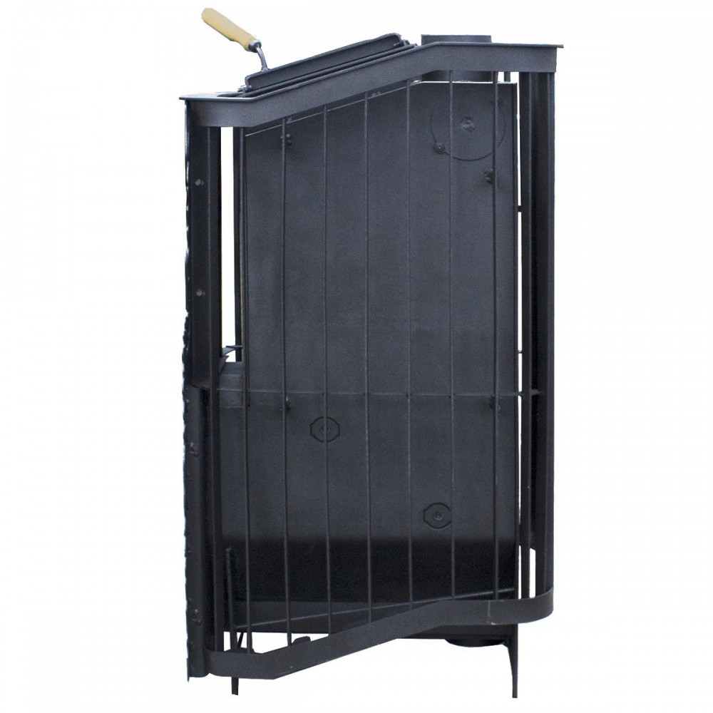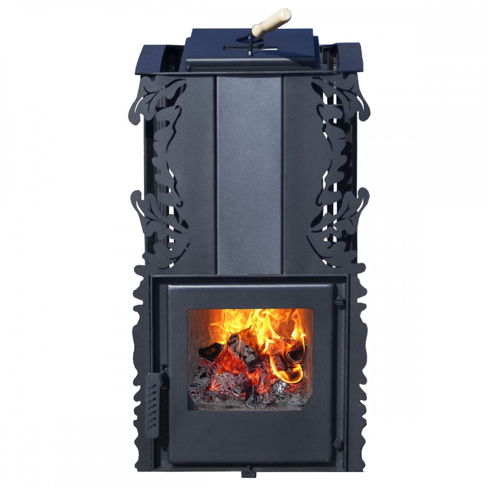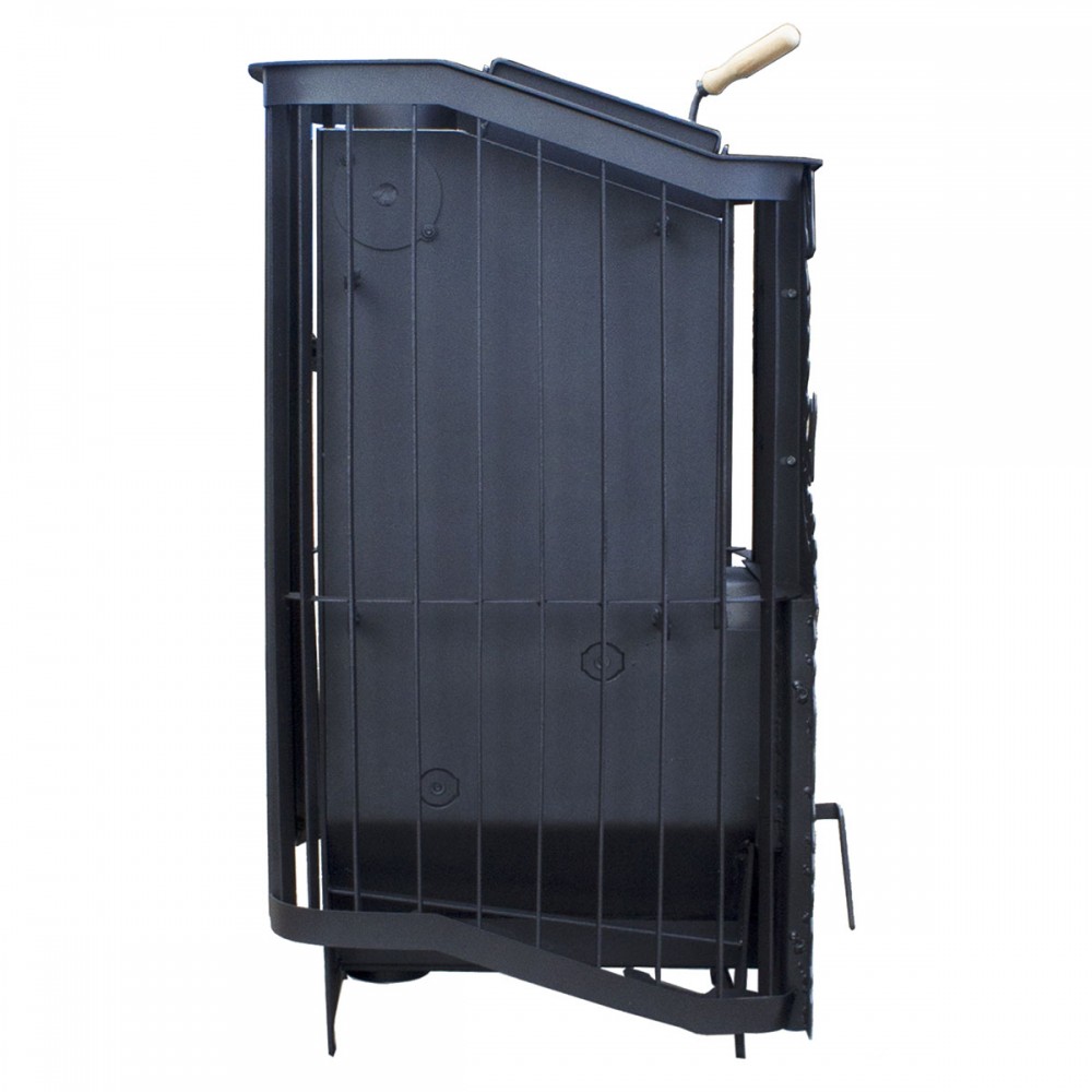 Топка и зольный ящик изготовлены из стального проката, усиленные в участках подверженных наибольшей деформации гибкой. Рядом с отсеком для закладки камня находится патрубок для подключения дымохода.