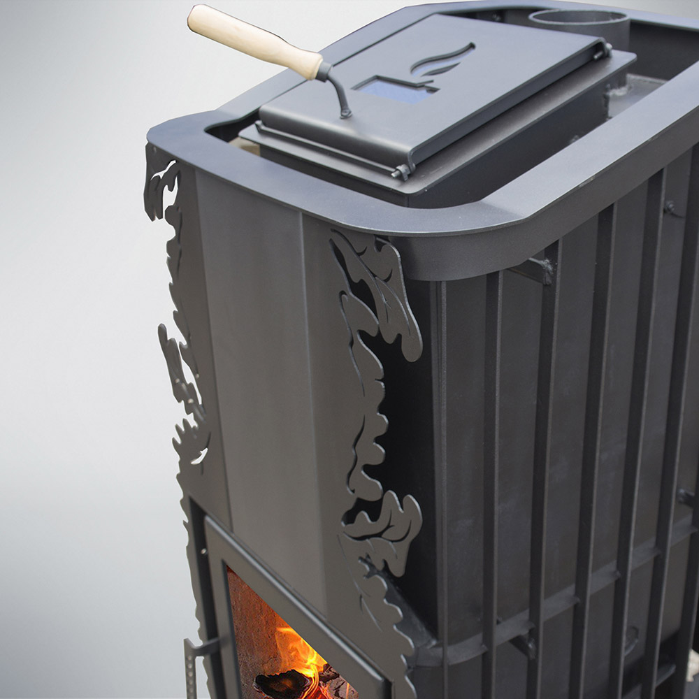 Одни из самых тяжелых печей из металла благодаря использованию 6-ти мм стали во всех элементах конструкции. В пересчете стоимости за кг изделия печи Варвара одни из самых дешевых на рынке банных печей. При этом надо отметить, что внешний вид и надежность не сопоставимы с низкой ценой, что и явилось залогом успеха и признанием покупателей.