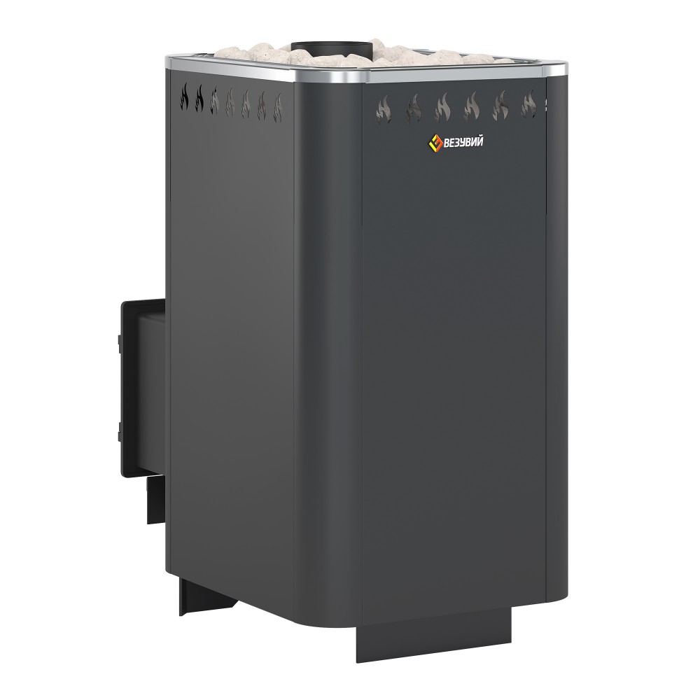 Конвекционная банная печь ВЕЗУВИЙ Русичъ Антрацит 28 (ДТ-4) изготовлена из особо прочной котловой стали марки 09Г2С толщиной 4-6 мм и может устанавливаться в парную объёмом от 14 до 30 кубических метров.