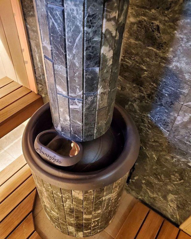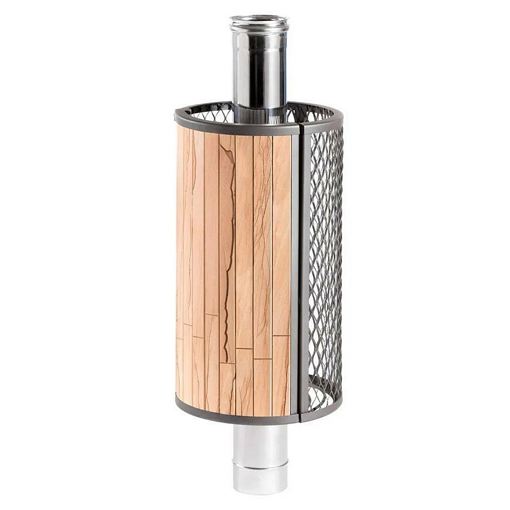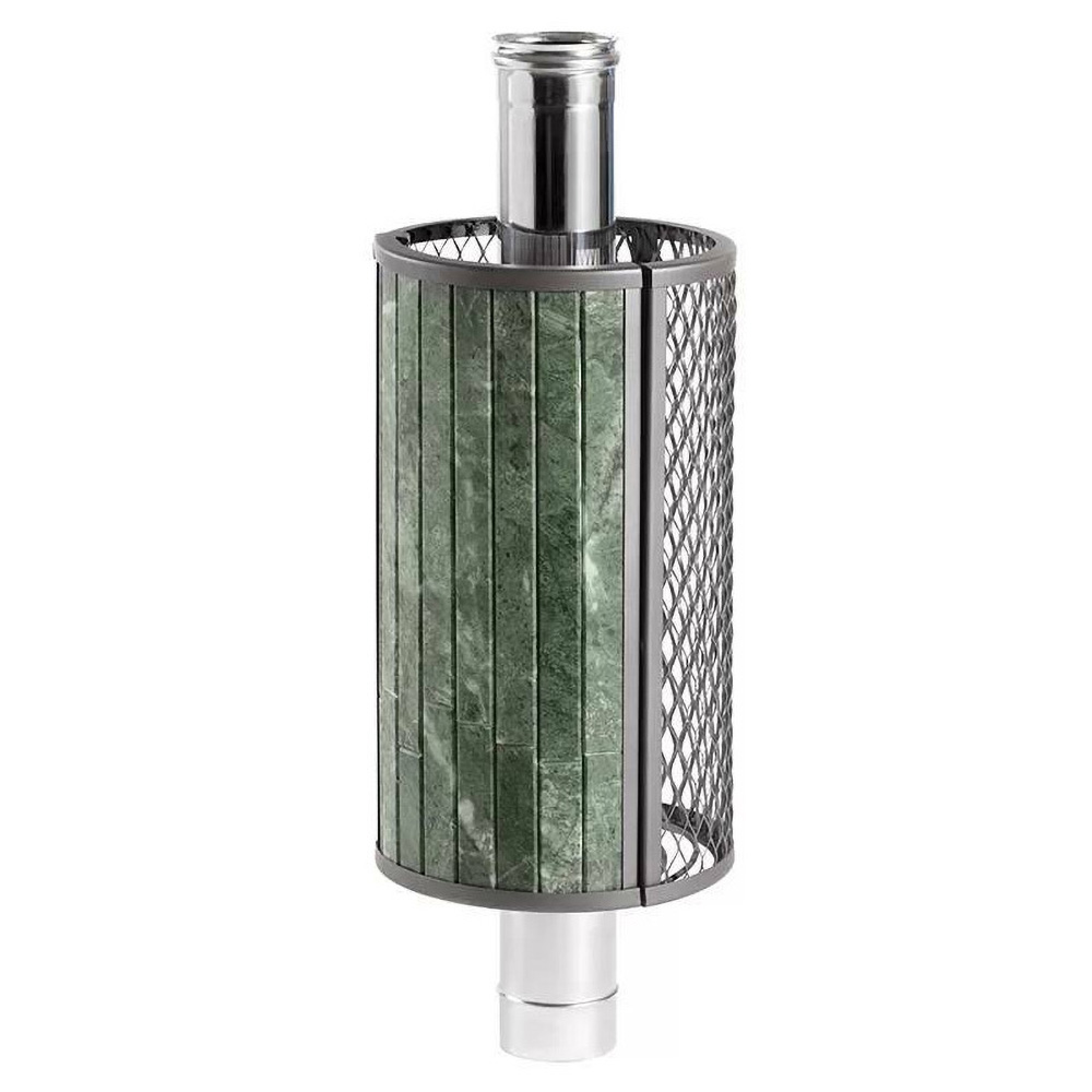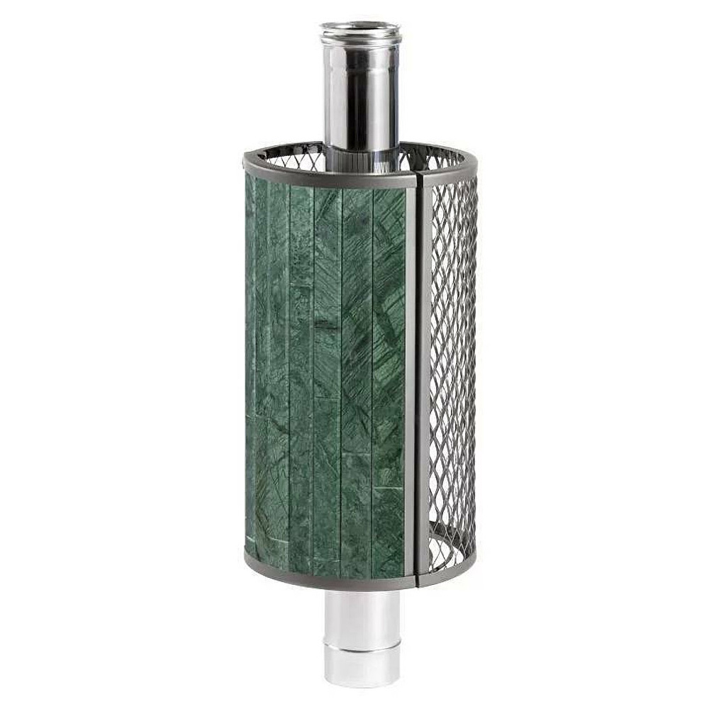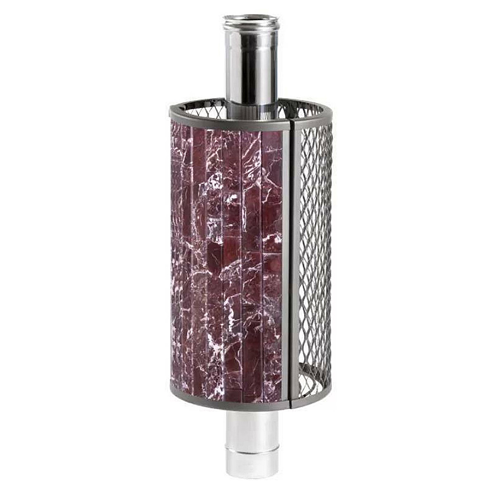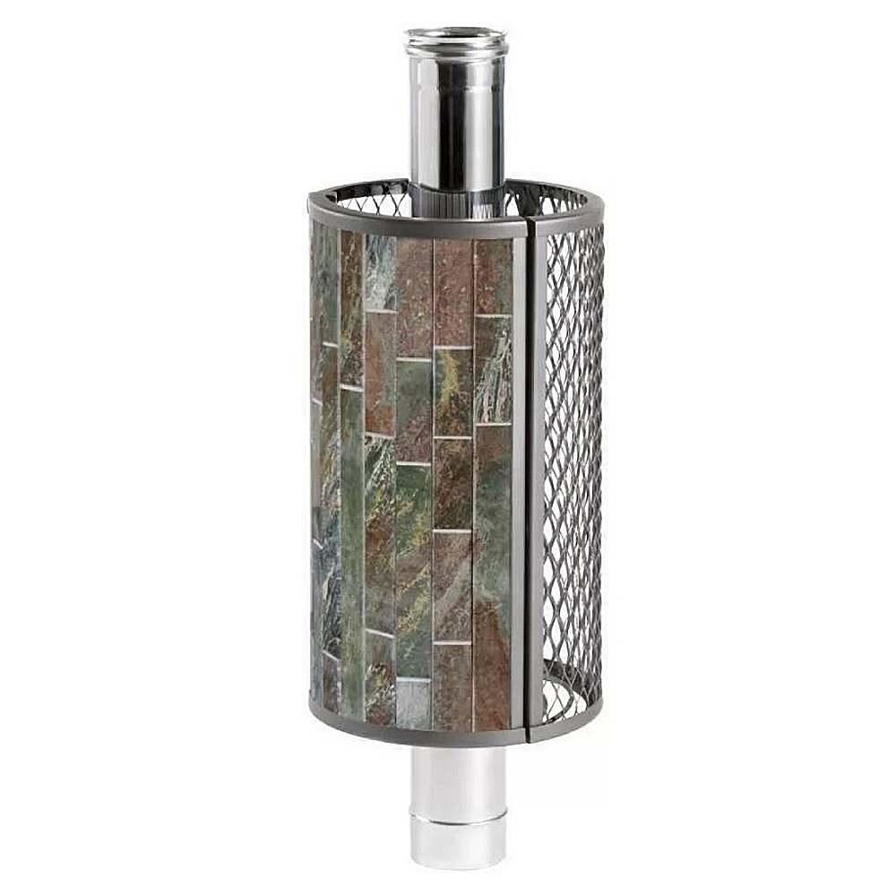 Сетка-каменка защищает от излучения, уменьшая поверхность открытой трубы, снимает тепло с ее стенок и направляет его на прогрев камней.