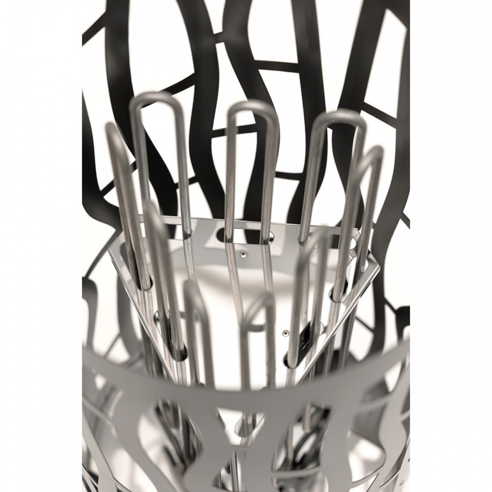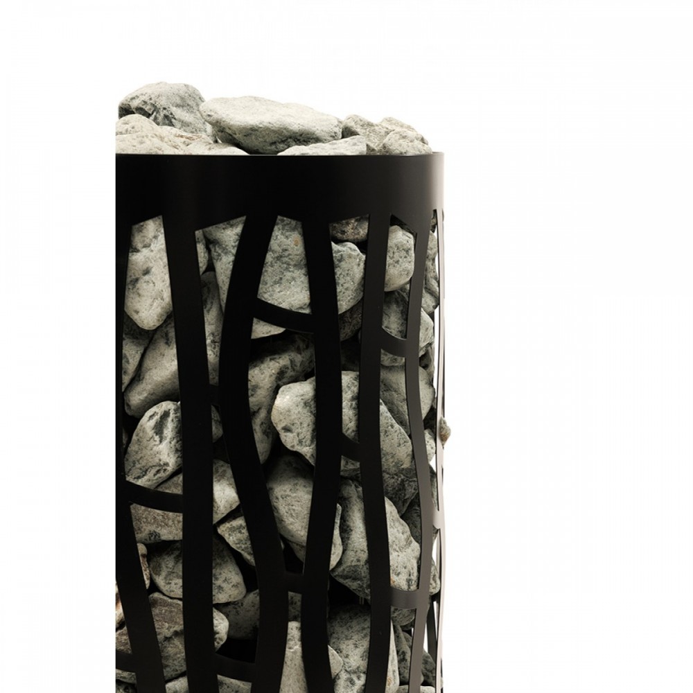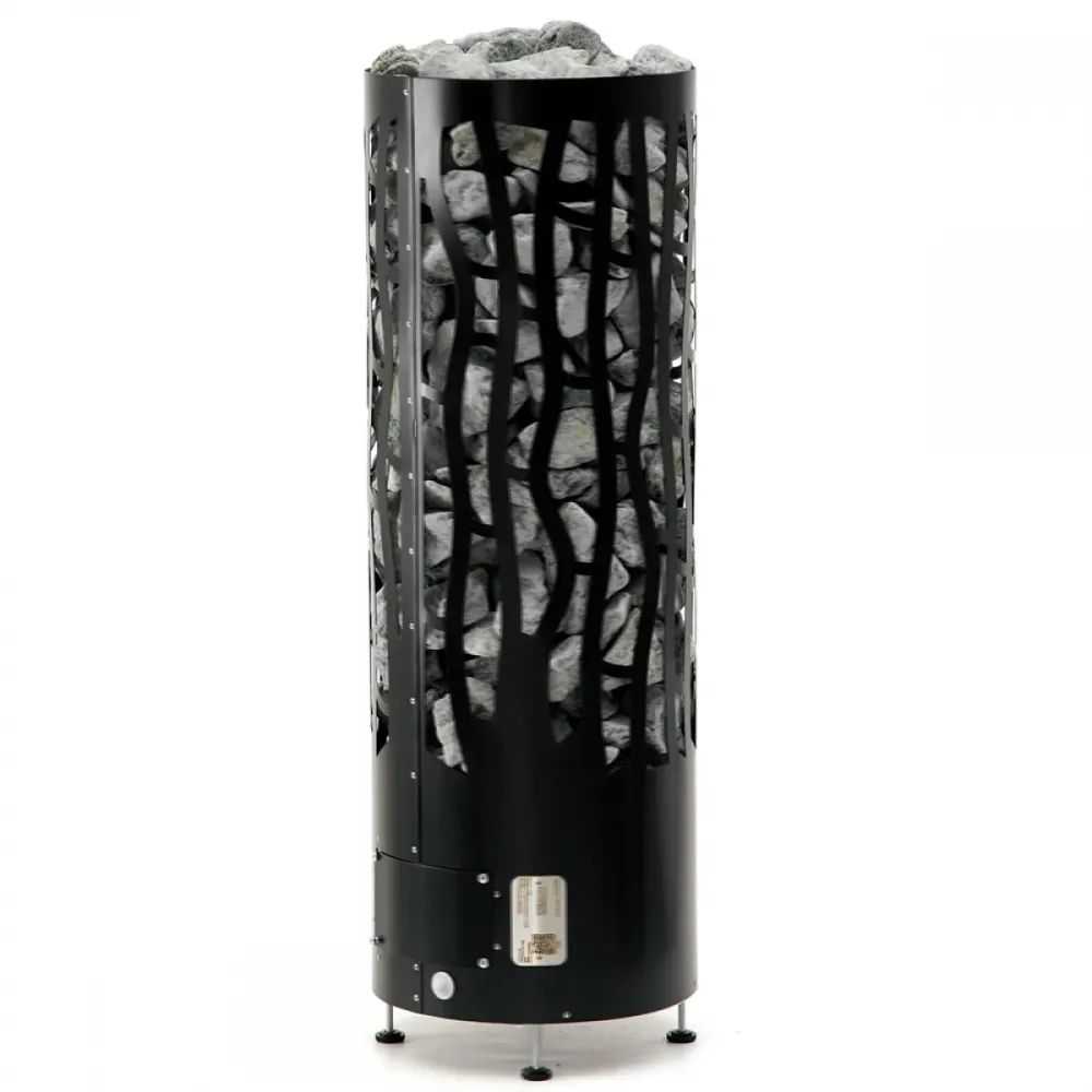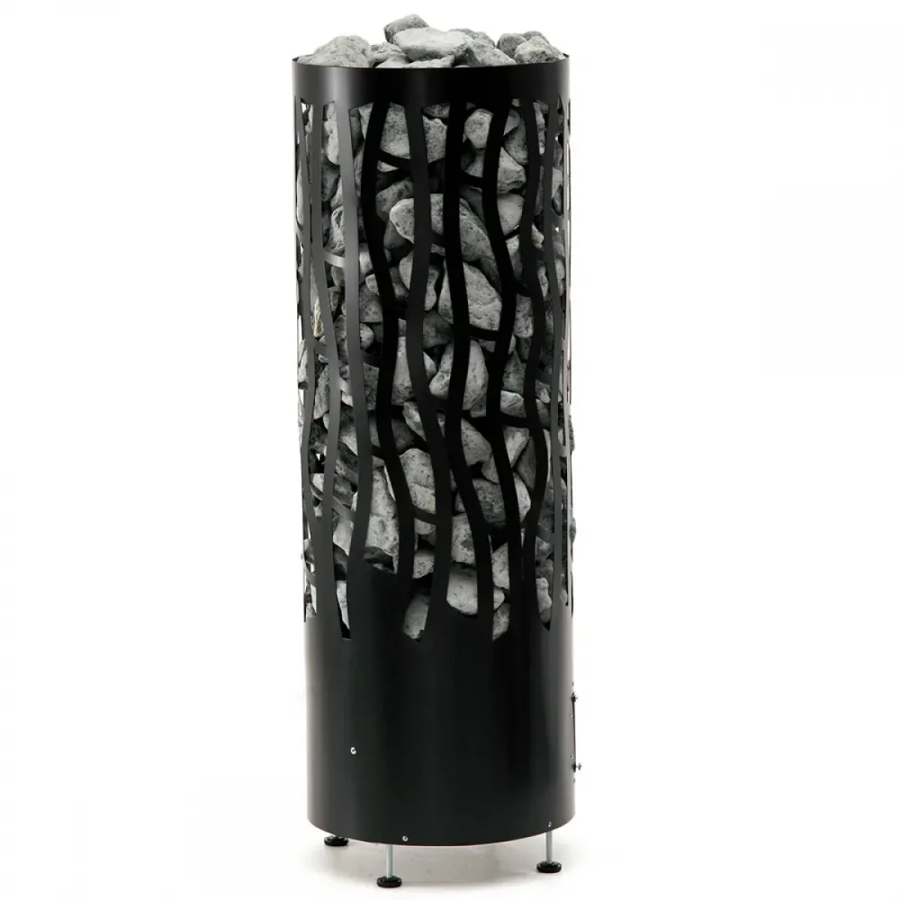 Особенность дизайна каменки отражена в названии: “RAIN”– дождь. При взгляде на извилистые линии корпуса действительно вспоминаются бегущие дорожки дождя по стеклу. Такая каменка идеальна для тех, кто привык к традиционной цилиндрической форме электрических печей, но готов немного выйти за рамки классики.