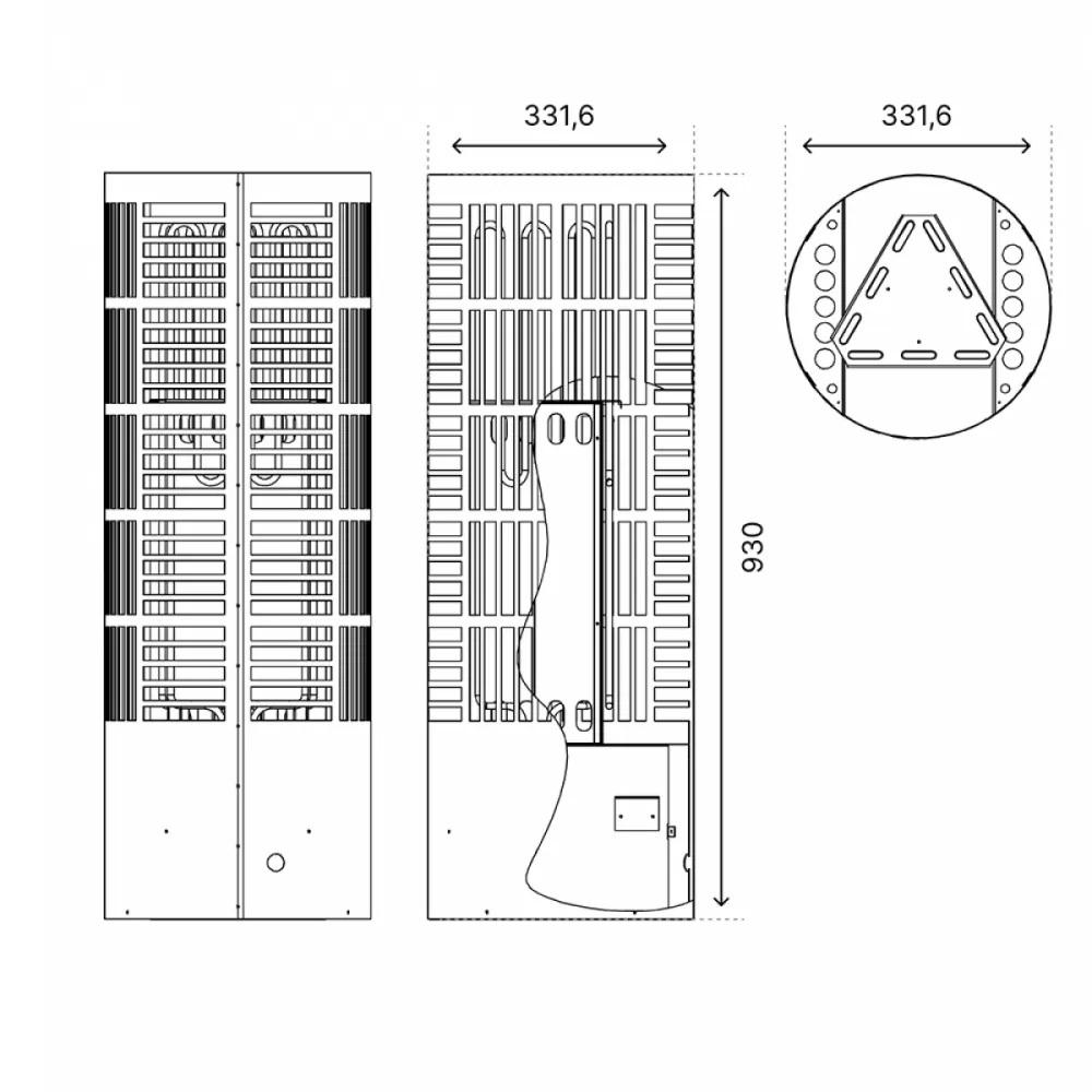 Благодаря вертикальной конструкции и уникальному внутреннему конвектору каменка разогревает помещение на 30% быстрее. Конвектор также служит дополнительным каркасом для ТЭНов, что обеспечивает долговечность и сохраняет их форму даже при интенсивной эксплуатации.