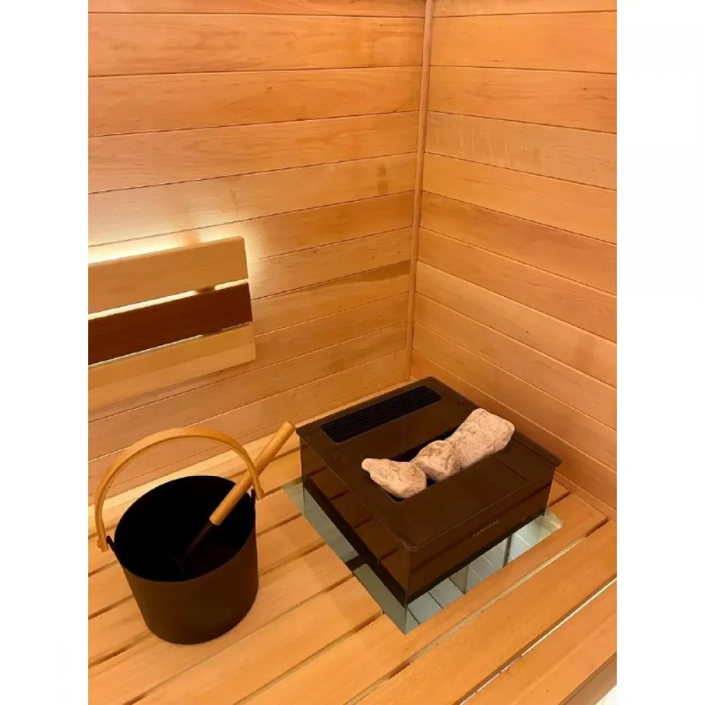 Микроклимат настоящей русской бани и сауны без дров, дымохода и печного угла. В электрической печи для бани и сауны установлено два источника тепла: конвектор для нагрева воздуха и закрытая каменка. Теперь вы всегда будете получать стабильную температуру и готовый легкий пар в одном режиме. Сделайте парение доступным, безопасным и полезным для здоровья вместе с Sangens Series W.