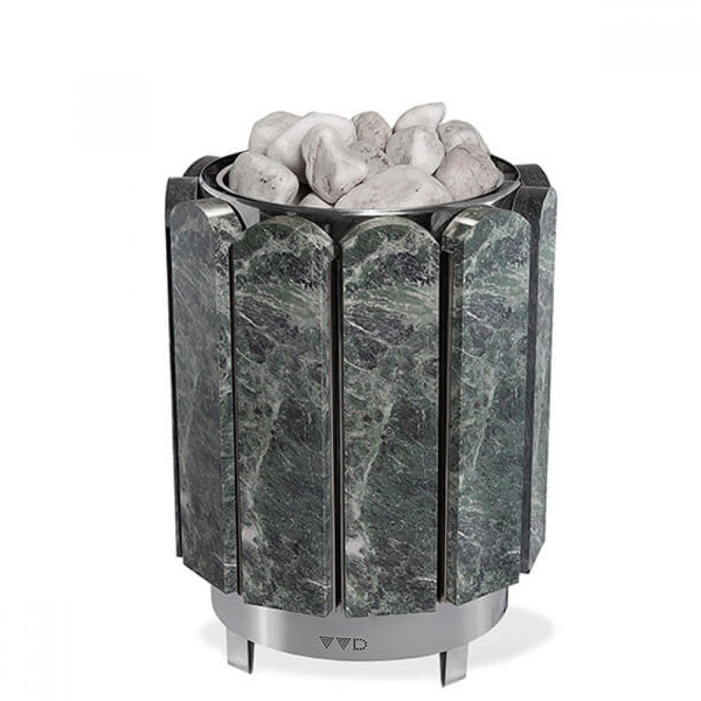 - Быстрый прогрев помещения и хороший пар обеспечиваются высокой мощностью нагревательных элементов и большим объемом камней вокруг них.