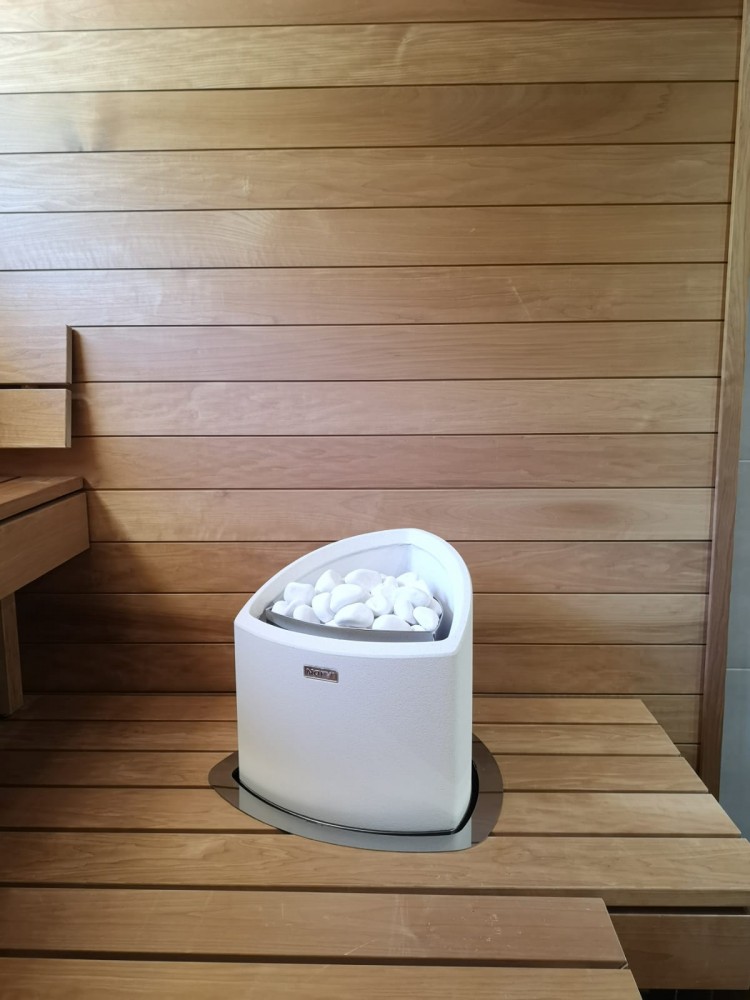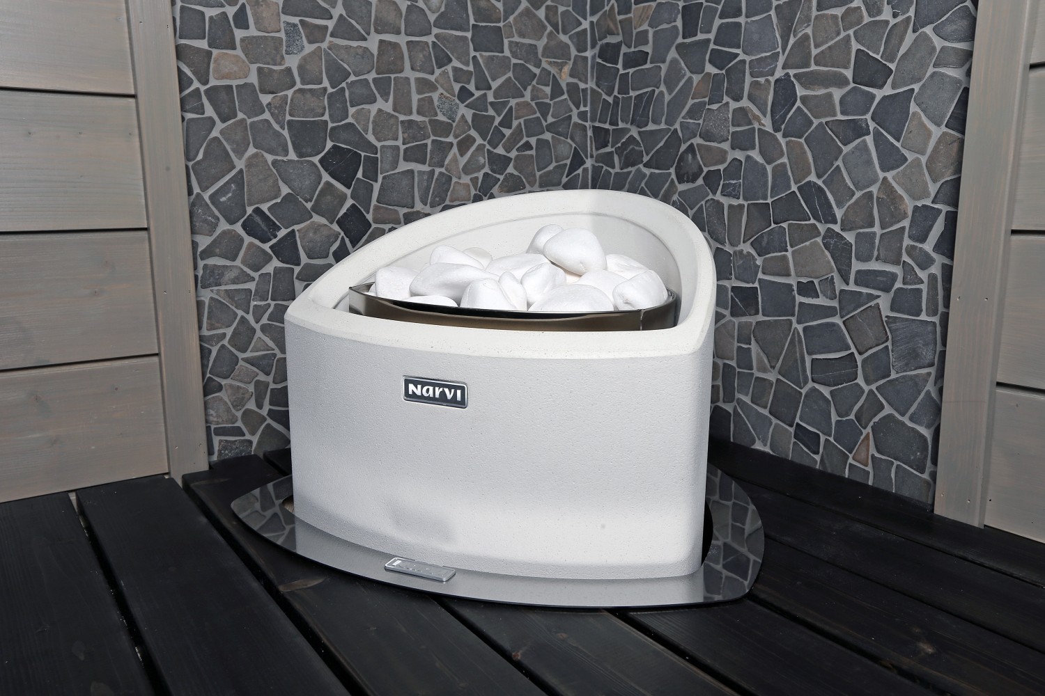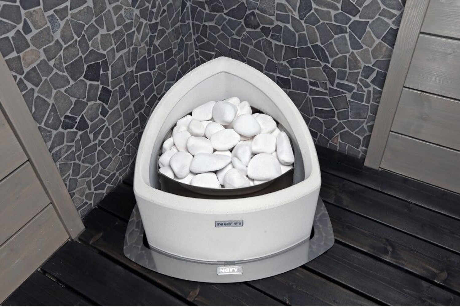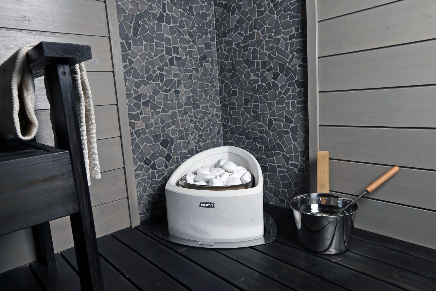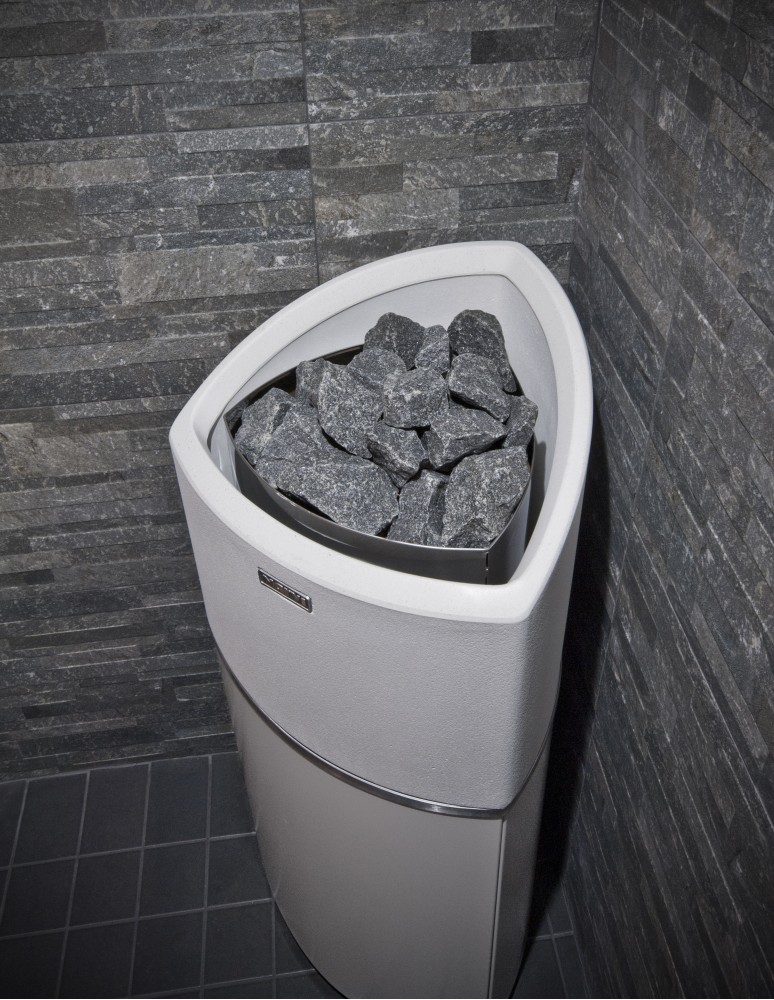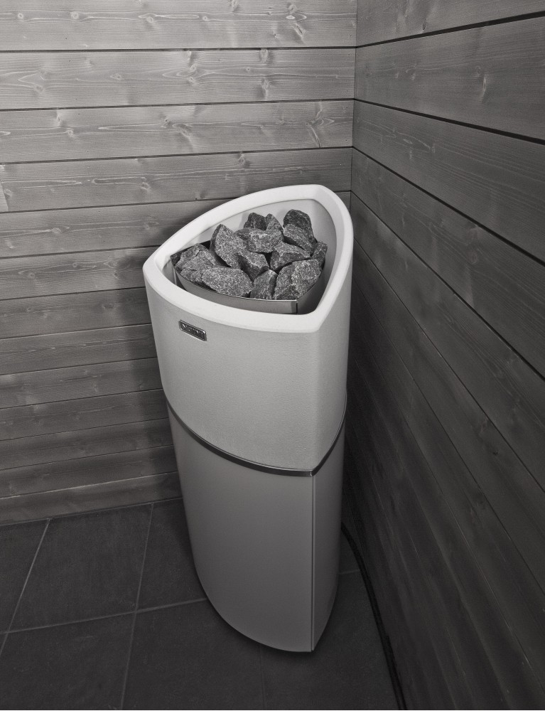 Стильная треугольная форма электрокаменки позволяет легко подобрать ей место в парильном помещении. Каменка прекрасно подходит для установки в углу парной, а благодаря малым безопасным расстояниям её можно установить в маленькое по объёму парильное помещение. При этом достаточно большая масса камней обеспечит парильщиков мягким и лёгким паром на протяжении всего сеанcа проведения банных процедур..