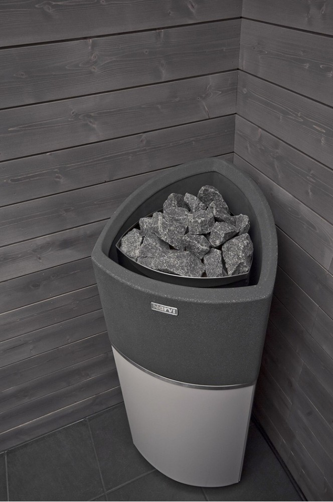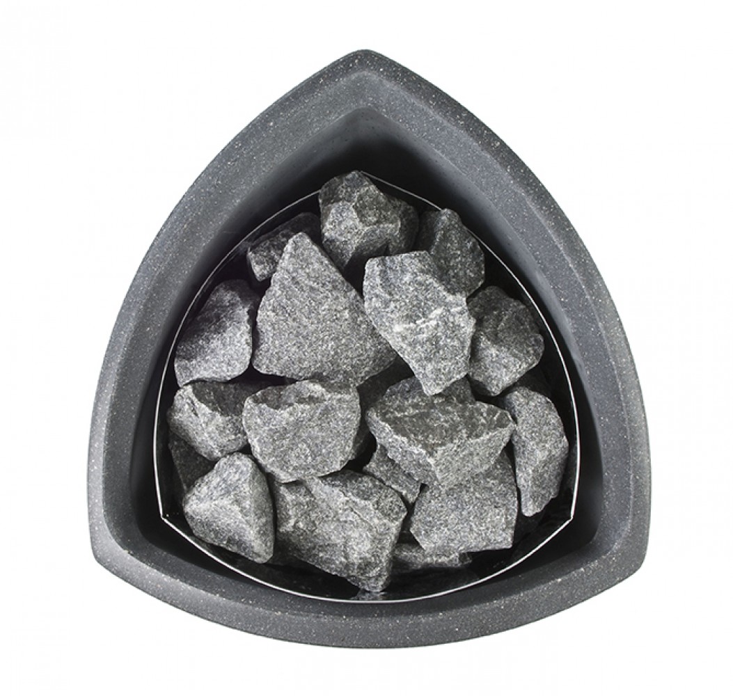 Стильная треугольная форма электрокаменки позволяет легко подобрать ей место в парильном помещении. Каменка прекрасно подходит для установки в углу парной, а благодаря малым безопасным расстояниям её можно установить в маленькое по объёму парильное помещение. При этом достаточно большая масса камней обеспечит парильщиков мягким и лёгким паром на протяжении всего сеанcа проведения банных процедур..