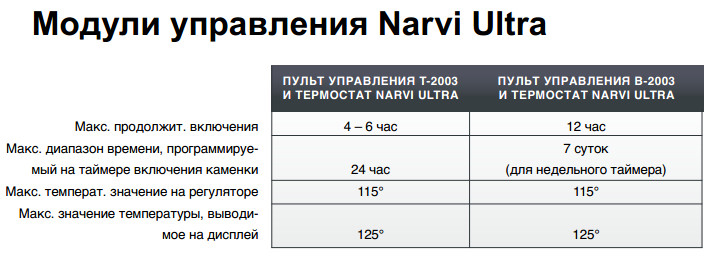 Нагревательный элемент электрических каменок, изготавливаемых NARVI Oy, обладает на редкость большим диаметром (8,5 мм). Благодаря этому обеспечивается долгий срок службы нагревательного элемента и существенно уменьшается риск перегрева.