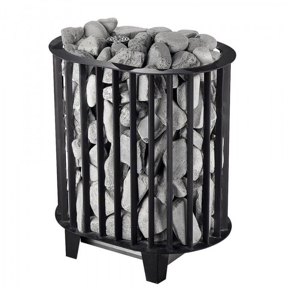 Быстрый прогрев помещения и хороший пар обеспечиваются высокой мощностью нагревательных элементов и 150 кг камней. Обладая высокой теплоемкостью, печь экономно расходует электроэнергию.
