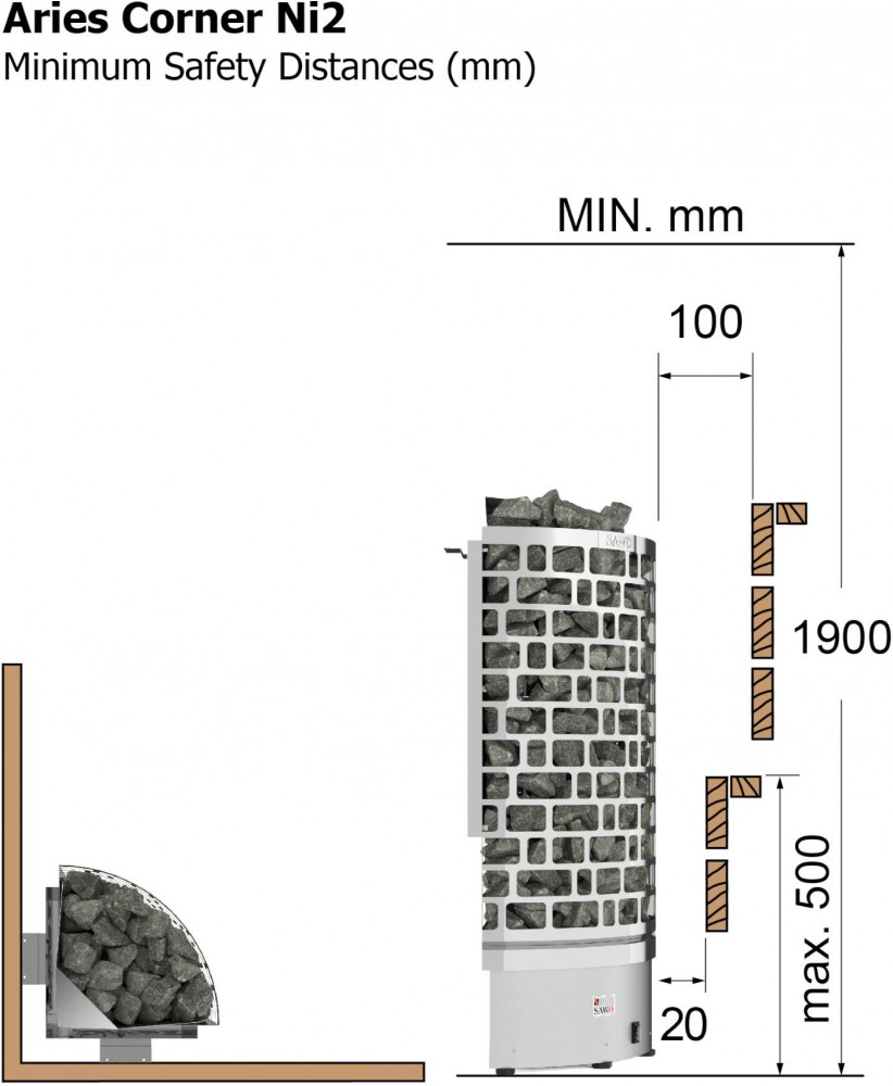 Модели Ni2 (встроенный блок питания Saunova 2.0)Aries — это очередная ступень в эволюции электрических печей. Их корпус выполнен из цельного листа металла. Небольшая высота печи дает больше возможностей для ее размещения в сауне и обеспечивает более быстрое нагревание. Угловые печки Aries помогут вам сэкономить свободное место в сауне. Более того, размещение печки в углу — наиболее безопасный вариант для избежания случайных контактов с ней.
