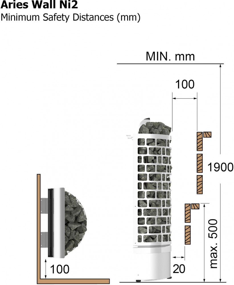 Модели Ni2 (встроенный блок питания Saunova 2.0)Электронагреватель SAWO Aries Wall - это компактное решение без ущерба для стиля. Стена Aries сочетает в себе паровые свойства башенного обогревателя с практичностью установки настенного обогревателя! Печь может быть становлена непосредственно у стены, что делает ее идеальной для установки даже в небольших помещениях. Aries Wall Ni2 - это модель автономного нагревателя с блоком питания, встроенным в нижнюю часть нагревателя сауны, и брызгозащитной панелью управления, которая может быть установлена внутри или снаружи сауны. Большое количество камней в печи обеспечивает очень влажный пар, который снижает температуру на коже. Зажимы резисторов оставляют некоторое пространство вокруг резисторов и легче выпускают горячий воздух в сауну, что, в свою очередь, ускоряет нагрев сауны и продлевает срок службы резисторов. Низкое и широкое тело Aries Wall позволяет легко просматривать и удалять каменные плиты. Внешняя оболочка легко снимается для удобства обслуживания.