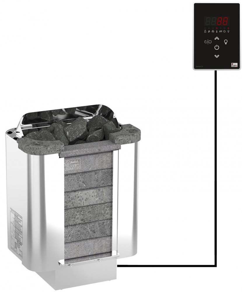 Печь для сауны SAWO Cumulus представляет собой отличный вариант электрической каменки для домашней сауны среднего размера. Электрокаменка SAWO Cumulus отличается тем, что имеет вставку из талькохлорита на передней панели. Дополнительные 10 кг талькохлорита придают печи элегантности, а Вам возможность дополнительно получать мягкое тепло и приятный пар от камня. Кроме того у электрической печи SAWO Cumulus есть сверху две чашечки из талькохлорита специально для ароматизаторов и эфирных масел. Кожух каменки изготовлен из нержавеющей и оцинкованной сталей, благодаря чему прослужит Вам долгие годы. Модель печи SAWO Cumulus предназначена специально для подключения выносного пульта управления – подойдут как родные пульты SAWO, так и пульты других производителей нужной мощности. Вы сможете с большим удобством управлять климатом в сауне из соседнего помещения. ТЭНы электрической печи для сауны SAWO Cumulus закладываются до 25 кг камней, которые защищают их от прямого попадания воды, которой Вы будете поливать на каменку.
