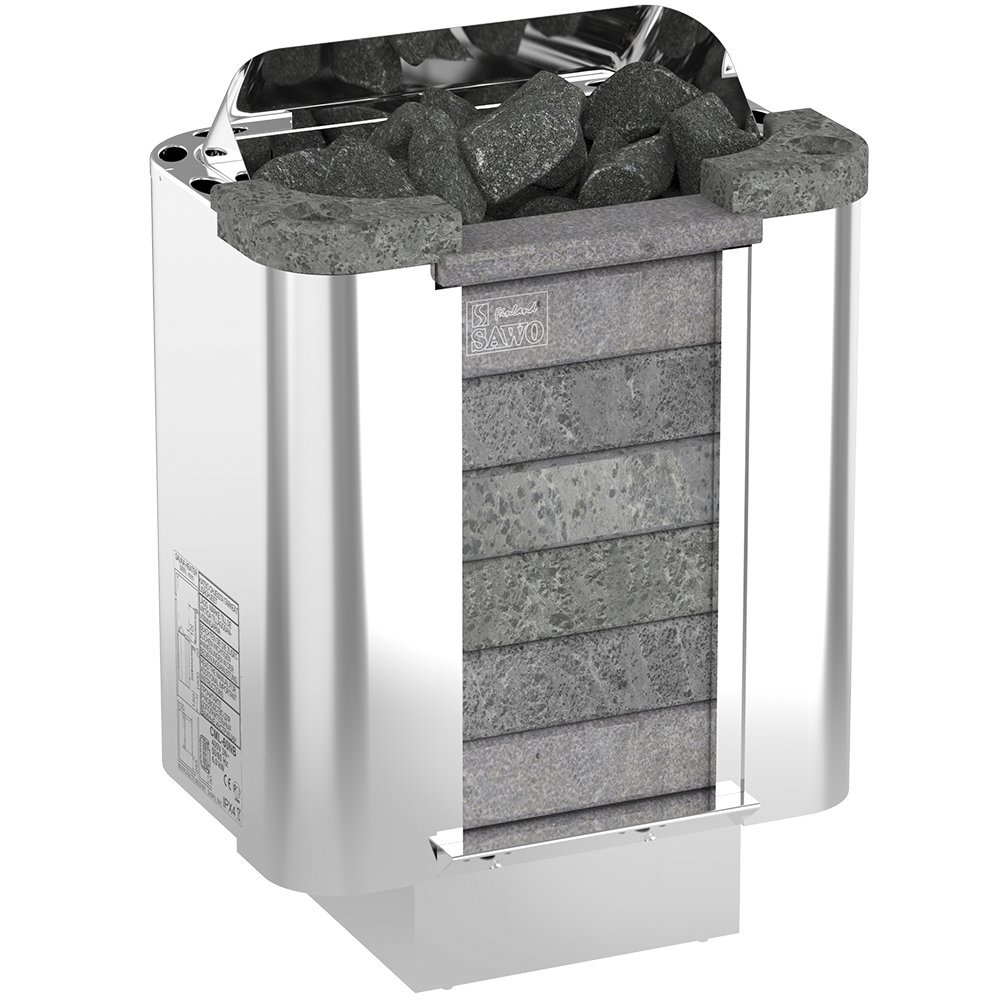 Печь для сауны SAWO Cumulus представляет собой отличный вариант электрической каменки для домашней сауны среднего размера. Электрокаменка SAWO Cumulus отличается тем, что имеет вставку из талькохлорита на передней панели. Дополнительные 10 кг талькохлорита придают печи элегантности, а Вам возможность дополнительно получать мягкое тепло и приятный пар от камня. Кроме того у электрической печи SAWO Cumulus есть сверху две чашечки из талькохлорита специально для ароматизаторов и эфирных масел. Кожух каменки изготовлен из нержавеющей и оцинкованной сталей, благодаря чему прослужит Вам долгие годы. Модель печи SAWO Cumulus предназначена специально для подключения выносного пульта управления – подойдут как родные пульты SAWO, так и пульты других производителей нужной мощности. Вы сможете с большим удобством управлять климатом в сауне из соседнего помещения. ТЭНы электрической печи для сауны SAWO Cumulus закладываются до 25 кг камней, которые защищают их от прямого попадания воды, которой Вы будете поливать на каменку.