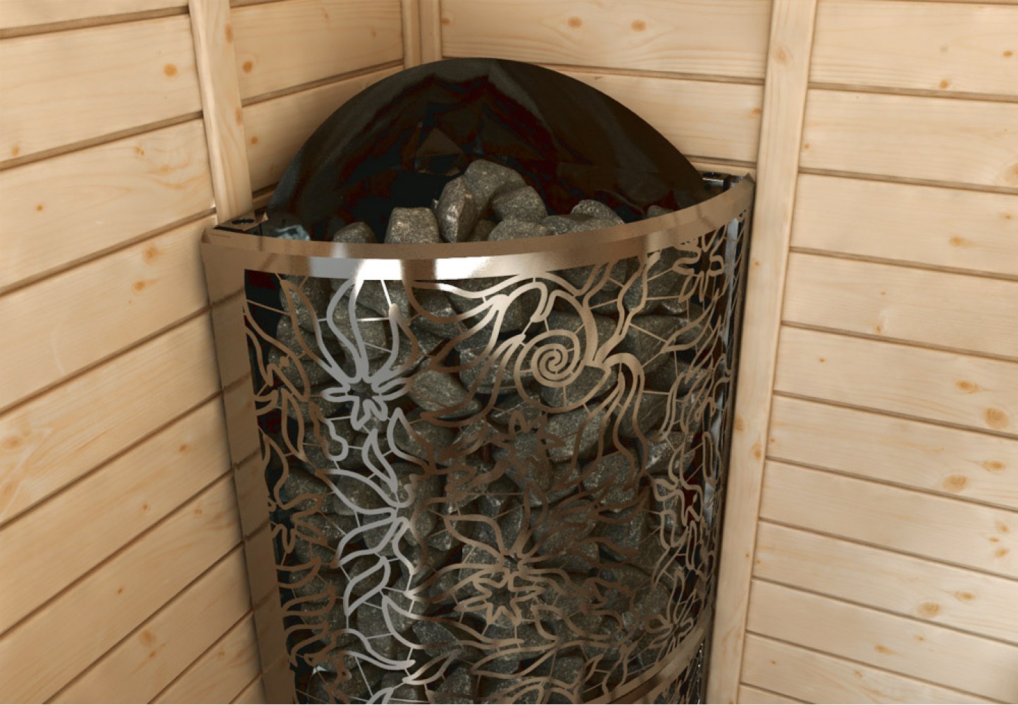 Дизайнеры и конструкторы компании Sawo разработали новую линейку электрических каменок Dragonfire Heater King. Печь обладает идеальным сочетанием габаритов и конструкции, выполнена из нержавеющей стали. Модель Dragonfire Heater King заслуживает внимания. Стильная каменка в форме углового цилиндра, украшена орнаментом в металле - это неповторимый образ. Цилиндрическая угловая форма печи позволяет сэкономить место, при этом вместимость отделения для камней большая, что позволит нагревать сауну быстро и равномерно. Dragonfire Heater King от Sawo - идеальное приобретение для стильной сауны.Печь серии Dragonfire Heater King, с выносным пультом управления. Полностью из нержавеющей стали.