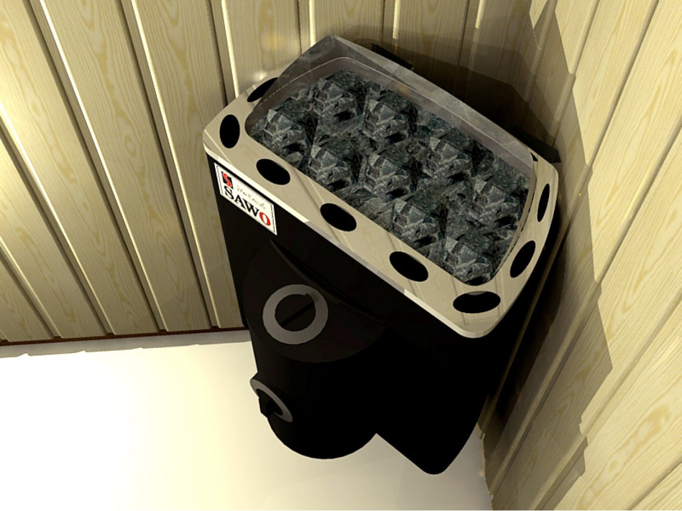 Корпус электропечи для сауны Sawo Mini X снаружи выполнен из нержавеющей стали, а внутри из оцинковки. Это также продлевает срок службы каменки.