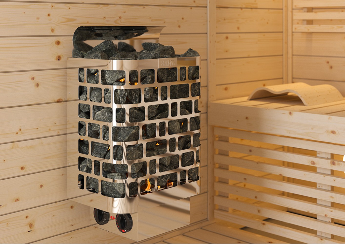 Электрическая Krios KRI-45NB-P производства Sawo применяется для небольших саун объемом до 6 куб. метров, и поможет вам сэкономить место в сауне. Конструкция корпуса позволяет вместить в каменке, при своей компактности, большое количество камней. Это является явным преимуществом и позволяет уменьшить необходимое безопасное расстояние от каменки до полков и также освободить дополнительное пространство в сауне. Большое количество камней печи способствует равномерному распределению и сохранению в помещении тепла. Если вы ищите энергоэффективную, стильную и компактную каменку, то купив электрическую печь Krios KRI-45NB-P от Sawo можно смело прекращать поиски и наслаждаться отдыхом в сауне.Красивая настенная печь с корпусом из нержавеющей стали и фирменным узором SAWO, разработанная в стиле моделей Aries и Cubos. Такой уникальной каменки вы еще не видели. Krios вмещает больше камней, а потому дает больше пара. Идеальное решение для создания мягкого и влажного тепла в небольших и средних саунах.