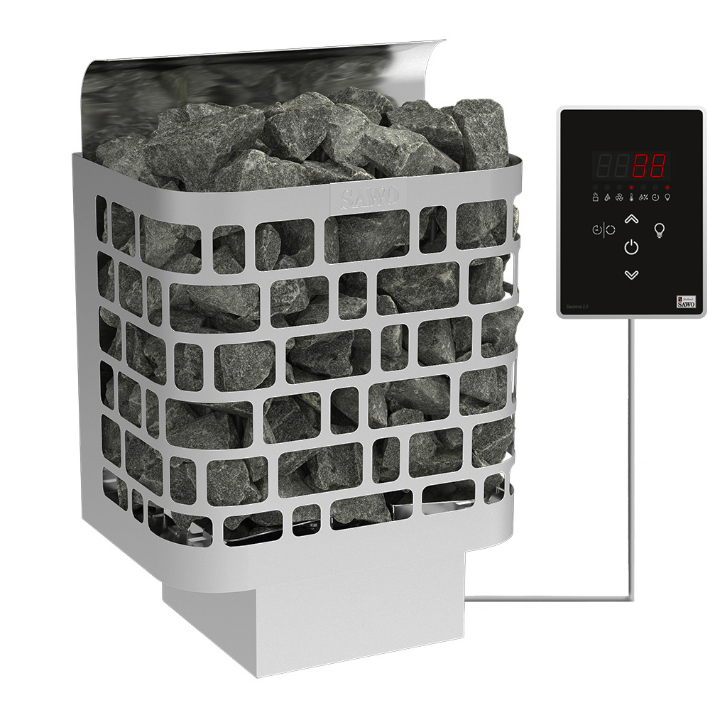 Управление данной моделью производится с помощью удобного выносного сенсорного пульта управления с интуитивно понятным интерфейсом. Он позволяет запрограммировать режим работы электрокаменки заранее, а также вносить необходимые корректировки непосредственно во время процедуры парения. Современная панель управления SAWO Saunova 2.0 с цифровым дисплеем может быть встроена в стену или установлена с отдельной монтажной рамой. Печь и Saunova 2.0 - это энергосберегающая пара, поскольку они обеспечивают равномерное распределение мощности, поддерживая только часть резисторов при достижении заданной температуры. Благодаря этой функции тэны равномерно нагружены и имеют более длительный срок службы. Температура может быть отрегулирована с точностью до одного градуса с помощью панели управления. Ее не следует эксплуатировать при температуре свыше 40 градусов. Пульт управления размещают в предбаннике или комнате отдыха. Устройство не предназначено для установки в парной.Для работы печи необходимо докупить пульт управления
