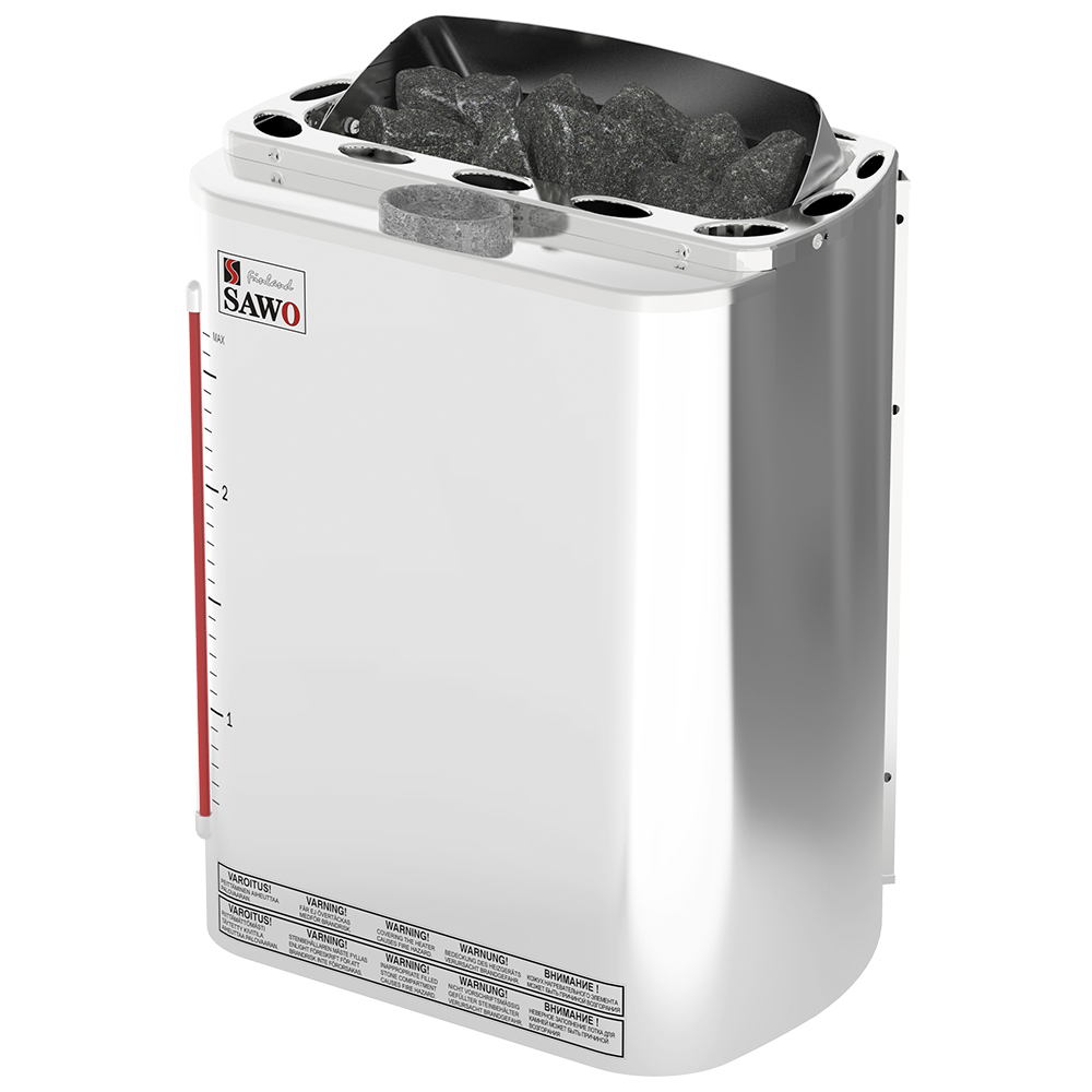 Обладает прочным корпусом и отсеком для камней. Электрокаменка Sawo Mini Combi отличается от серии "Mini" встроенным парогенератором, позволяющим сделать в сауне режим, приближенный к влажной парной. Одним из ноу-хау является встроенный индикатор воды, который позволит Вам всегда видеть количество воды, оставшееся в парогенераторе. Также сверху печи SAWO Mini Combi расположена чаша для ароматов или эфирных масел, что, несомненно, является хорошим плюсом. Сама электрокаменка выполнена из нержавеющей стали, придающей ей стиль и долговечность. Внутри эта модель имеет оцинкованное покрытие. На ТЭНы каменки укладываются камни для бани, и в режиме сауны Вы всегда сможете поливать на каменку воду, получая отличный пар. В верхней части парогенератора расположены две чаши для жидких ароматизаторов, выполненные из специального камня. Доступна в мощностях от 2.3 кВт до 3.6 кВт.