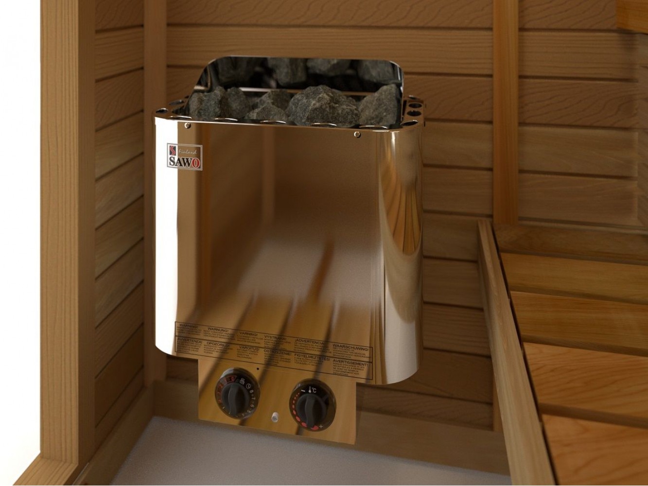Nordex Mini Ni2 - это модель автономного нагревателя с блоком питания, встроенным в нижней части нагревателя сауны, и брызгозащитной панелью управления для установки внутри или снаружи сауны.