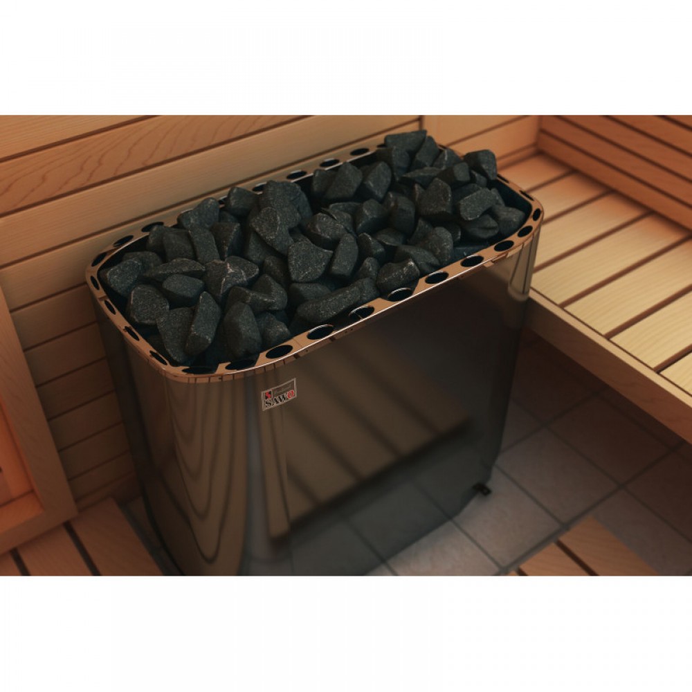 Электрокаменки Savonia 9кВт производятся только со встроенной панелью управления. Модификация Super SAWO находится в среднем диапазоне, который имеет мощность 15 кВт и мощность 18кВт. Модификация Super SAWO V12 может вместить до 100 кг. камней и диапазоном мощности от 18 кВт до 24квт.