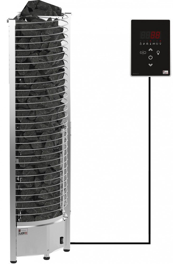 Управление данной моделью производится с помощью удобного выносного сенсорного пульта управления с интуитивно понятным интерфейсом. Он позволяет запрограммировать режим работы электрокаменки заранее, а также вносить необходимые корректировки непосредственно во время процедуры парения. Современная панель управления SAWO Saunova 2.0 с цифровым дисплеем может быть встроена в стену или установлена с отдельной монтажной рамой. Печь и Saunova 2.0 - это энергосберегающая пара, поскольку они обеспечивают равномерное распределение мощности, поддерживая только часть резисторов при достижении заданной температуры. Благодаря этой функции тэны равномерно нагружены и имеют более длительный срок службы. Температура может быть отрегулирована с точностью до одного градуса с помощью панели управления.