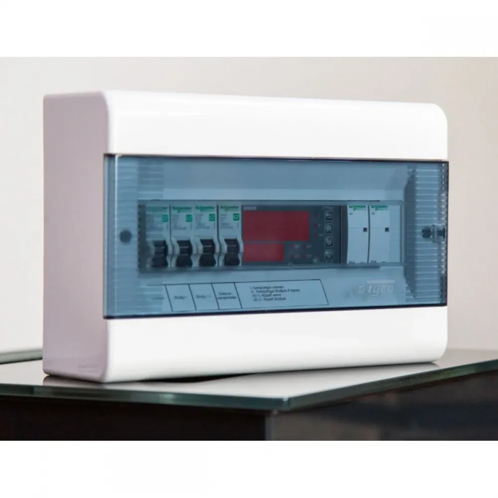 Пульт управления электропечами Sangens W15-18 для профессионального использования. На дисплей блока управления выводится информация с датчиков температур, находящихся в закрытой каменке и в помещении парной, при необходимости происходит регулировка работы электрокаменки.