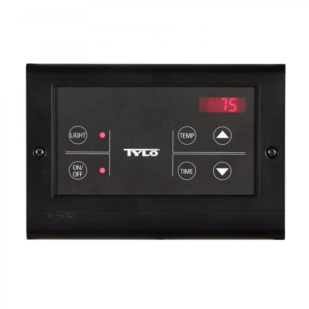Пульт управления Tylo CC50 оснащён дисплеем для отображения времени и температуры, кнопкой освещения и кодовым замком. Может управлять сауной или паровой баней.