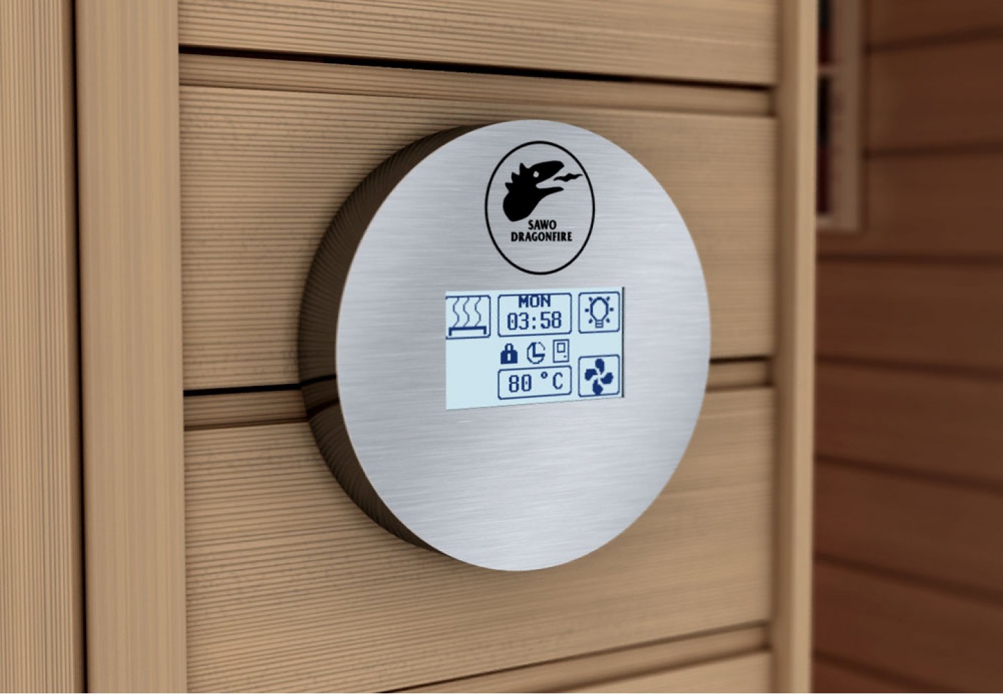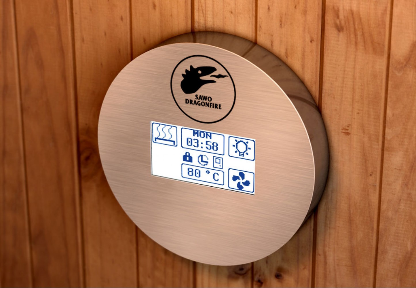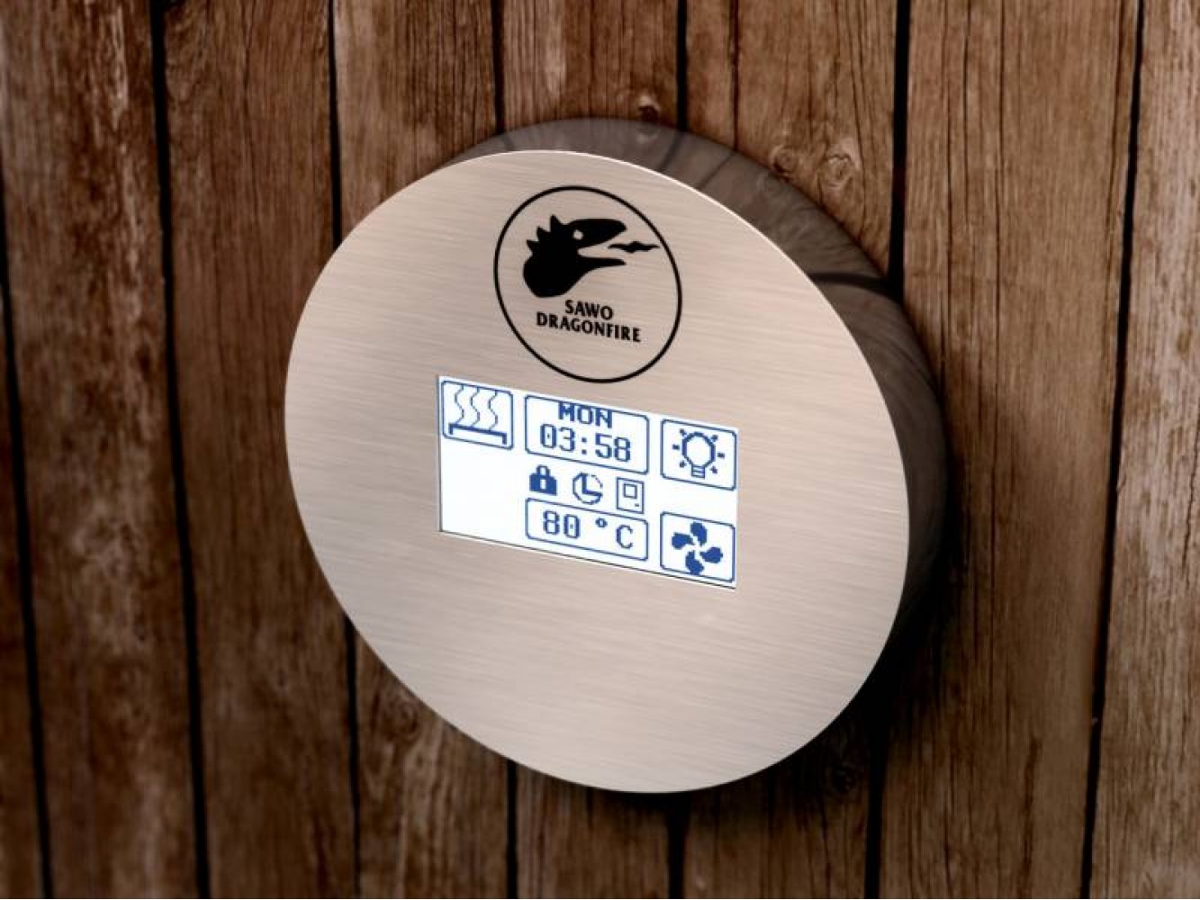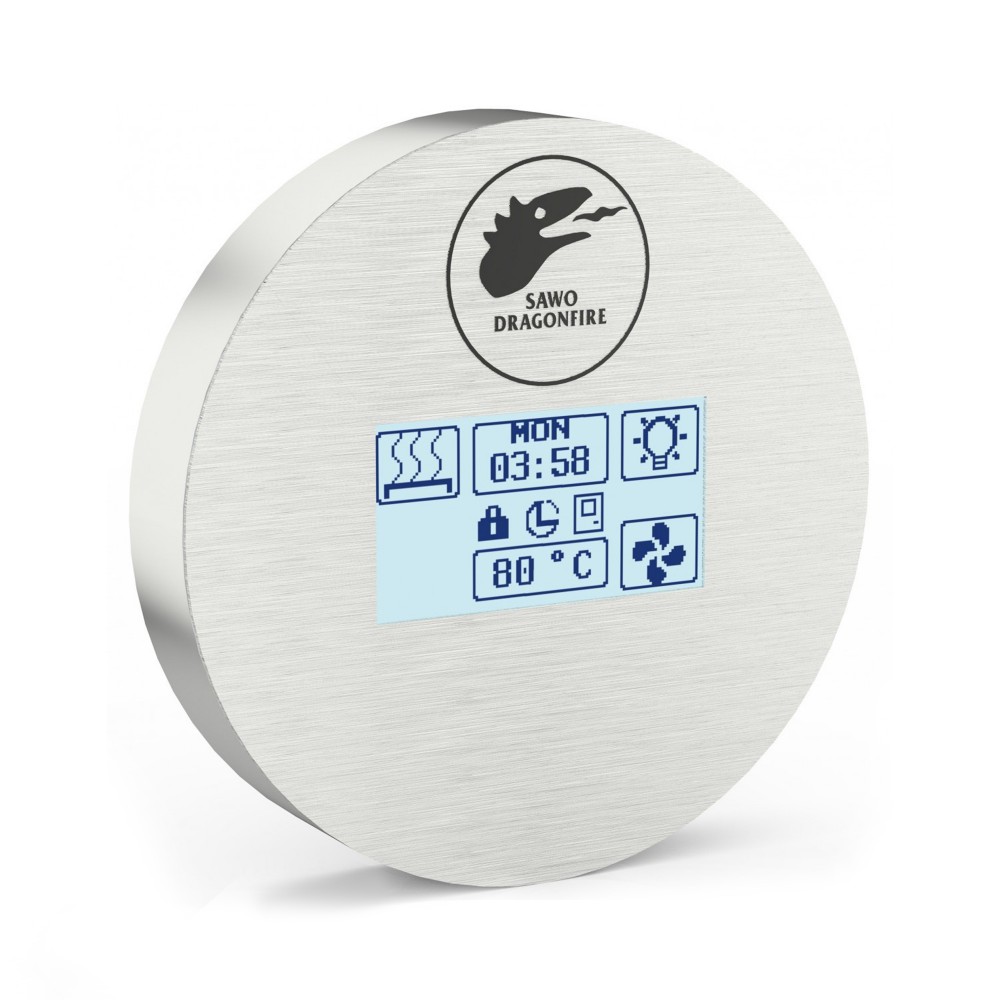 Суперсовременный сенсорный пульт управления Dragonfire Sawo оснащен удобным сенсорным ЖК-дисплеем. Позволит вам раномерно распределить мощность печи, существенно экономя электронергию. С помощью этого пульта управления можно настраивать температуру, влажность, управлять вентиляцией и освещением в сауне. Так же есть таймер предварительного запуска, с помощью которого можно заранее установить время, чтобы к вашему приходу сауна прогрелась до нужной температуры и была готова к использованию. Пульт управления Dragonfire поможет поддержать нужную температуру всего вашего пребывания в парилке, а по завершению отключит свет и печь.