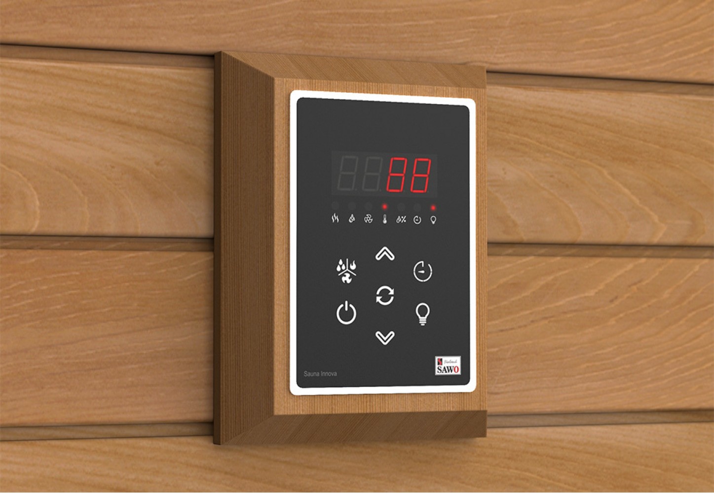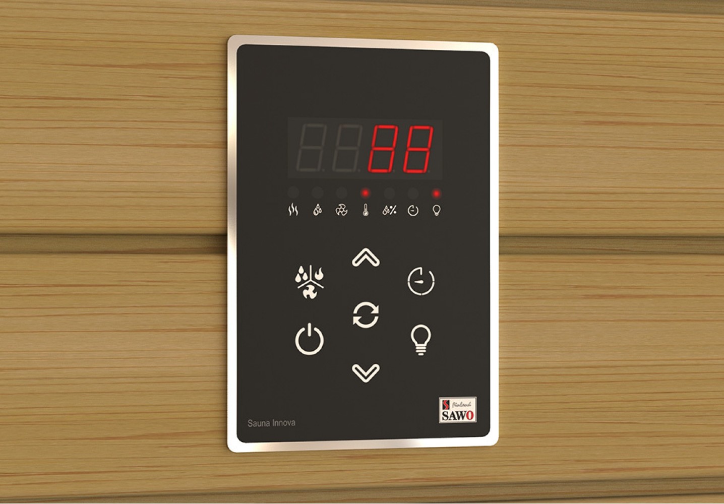 Innova Classic 2.0 с функцией интеллектуального контроля нагрева, которая попеременно отключает нагревательные элементы при достижении ими заданной температуры. Этот процесс уменьшает колебания температуры, благодаря чему нагревательные элементы работают в сбалансированном темпе. Пользовательский интерфейс Saunova можно установить как внутри сауны, так и снаружи.
